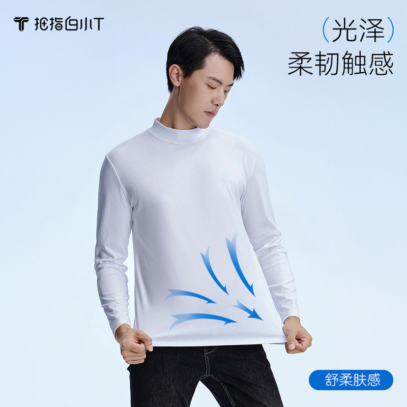 📚 拇指白小T水云棉小高领长袖T恤男冬季新款上衣圆领打底衫修身体恤