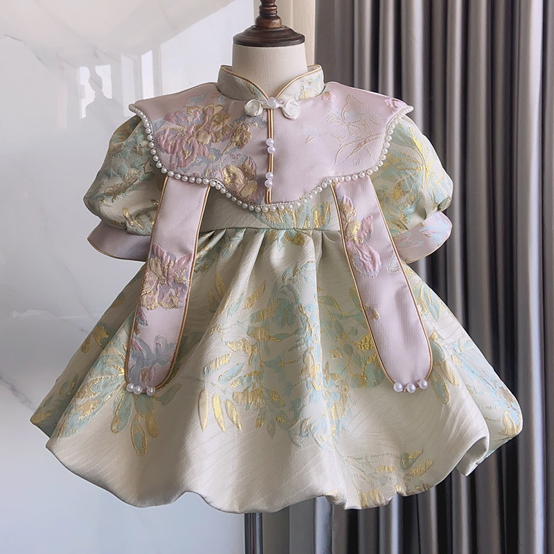 📚 中式女童周岁宴礼服女宝宝国风婴儿唐装拜年服高端婚礼公主裙冬款