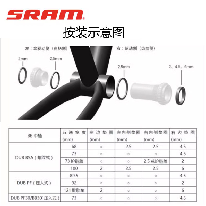 📚 SRAM速联DUB中轴 山地公路车GXP螺纹 压入 T47 PF86 PF30牙盘中轴