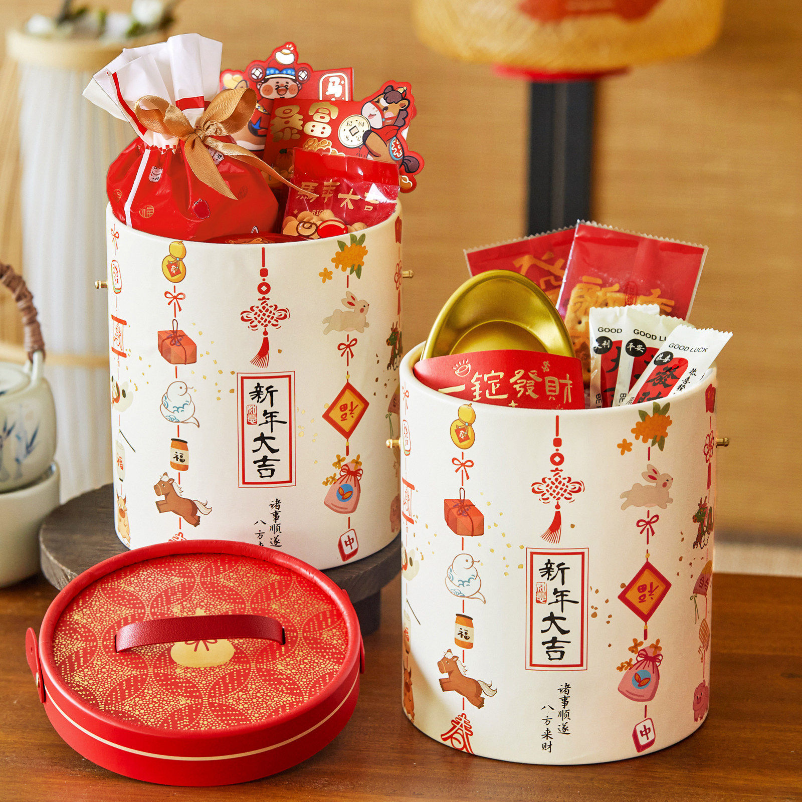 📚 马年新年礼盒包装盒中式年货饼干糖果零食春节手提抱抱桶礼品空盒