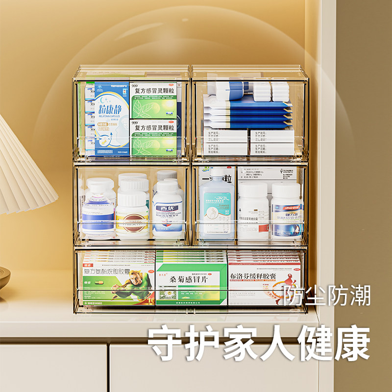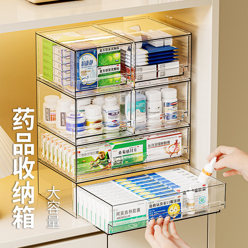 📚 抽屉药箱家用叠加大容量药物整理盒防尘医药箱家庭透明药品收纳盒