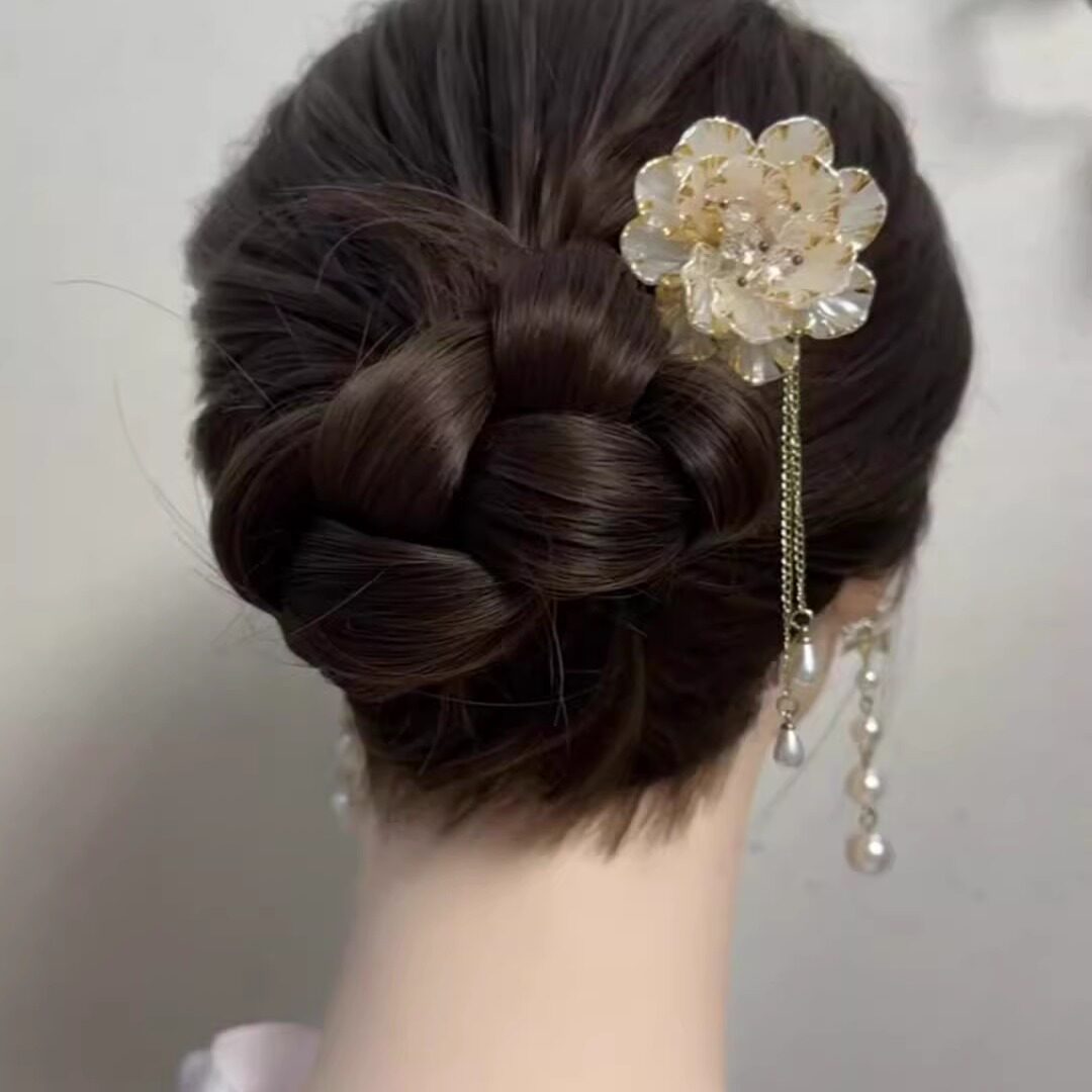 📚 牡丹细语!新中式精致花朵流苏U型发簪!古风高级发钗盘发器新品
