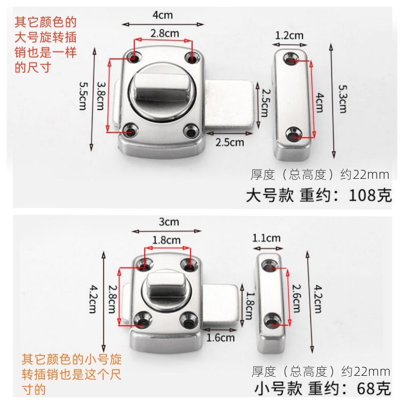 📚 左右旋转插销柜门卫生间通用反锁旋扭锁扣防盗搭扣黑色迷你门栓