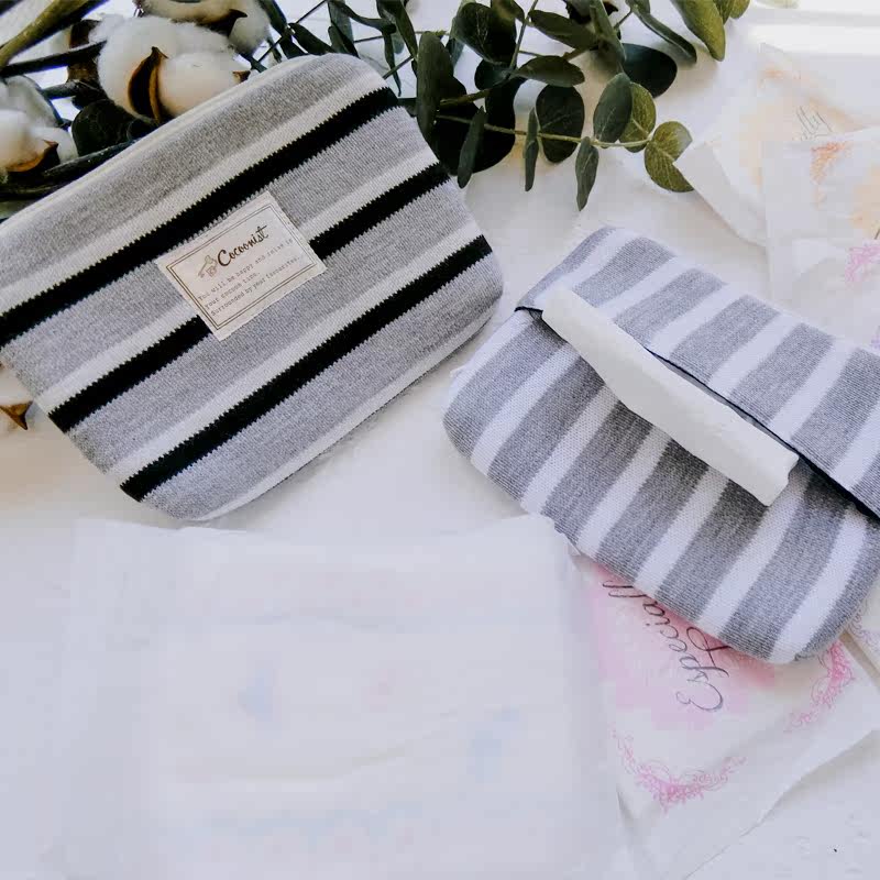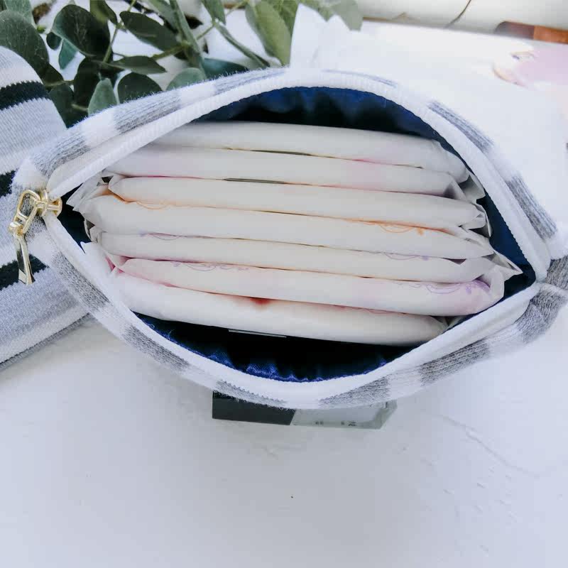 📚 大容量拉链卫生巾收纳包韩版简约条纹随身便携姨妈巾袋子月事小包
