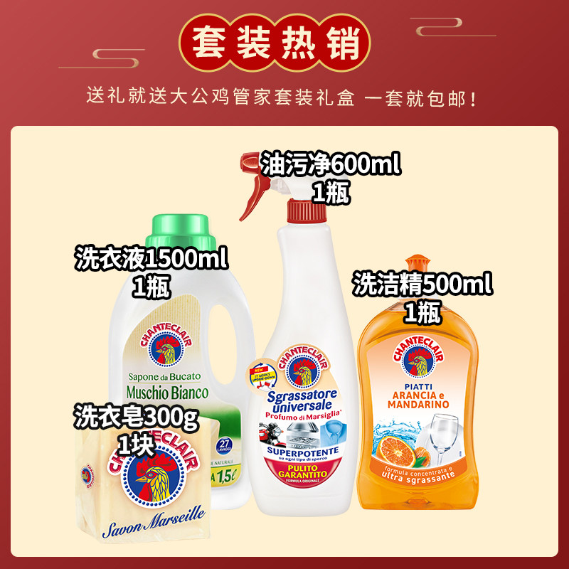 📚 大公鸡礼盒官方旗舰店正品厨房重油污洗衣液肥皂多功能清洁组合装