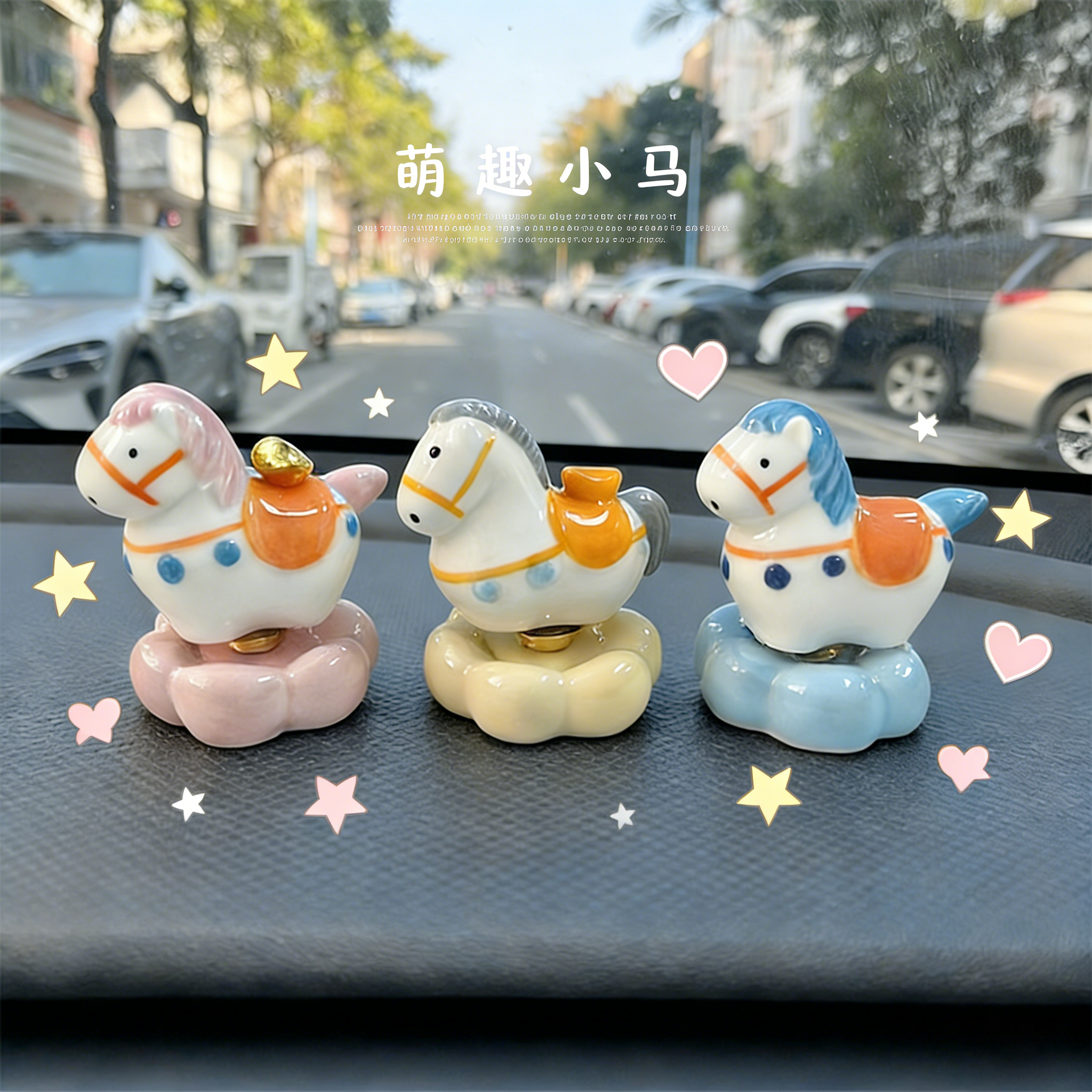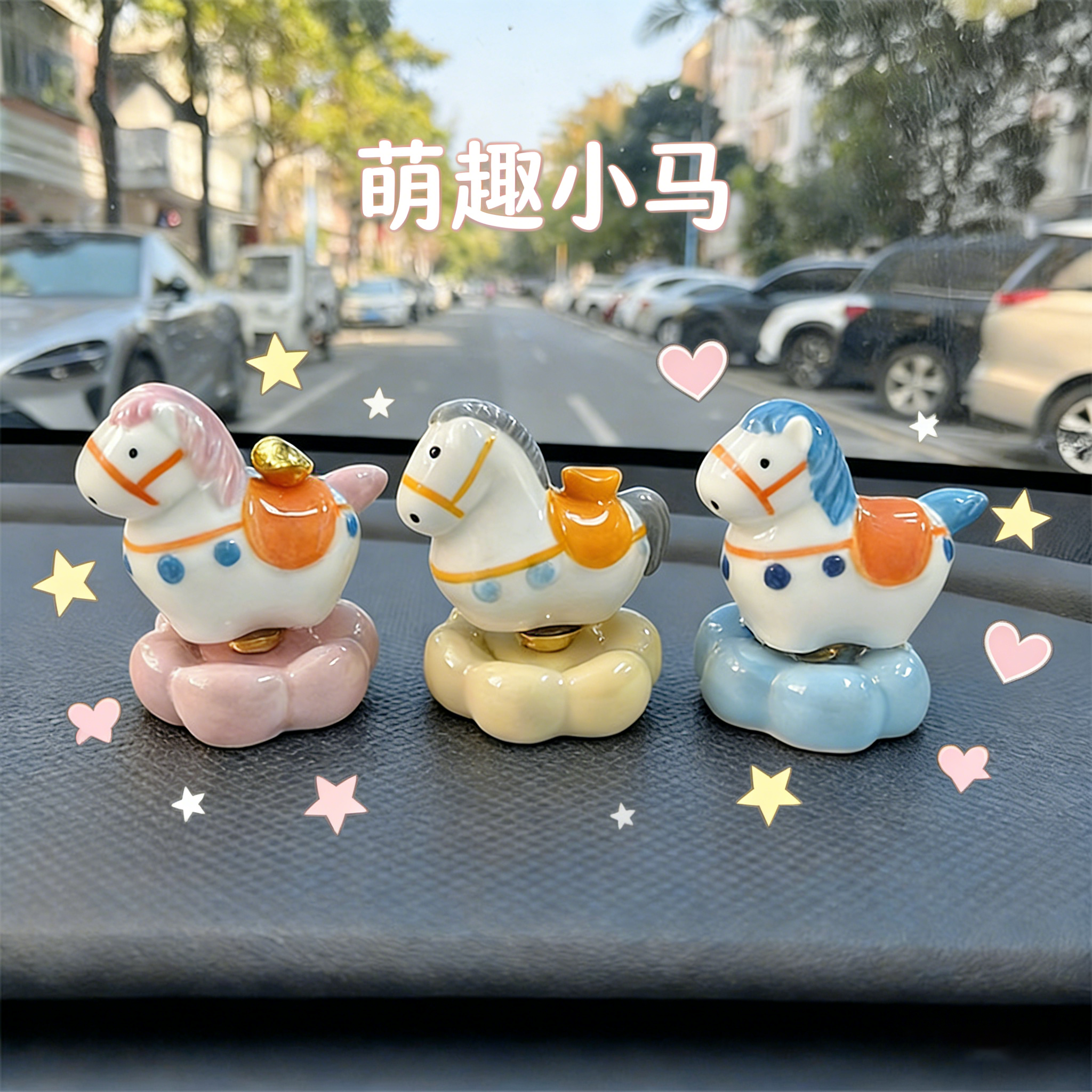 📚 景德镇陶瓷转转马汽车中控台摆件马上有钱办公室桌面车载创意摆件