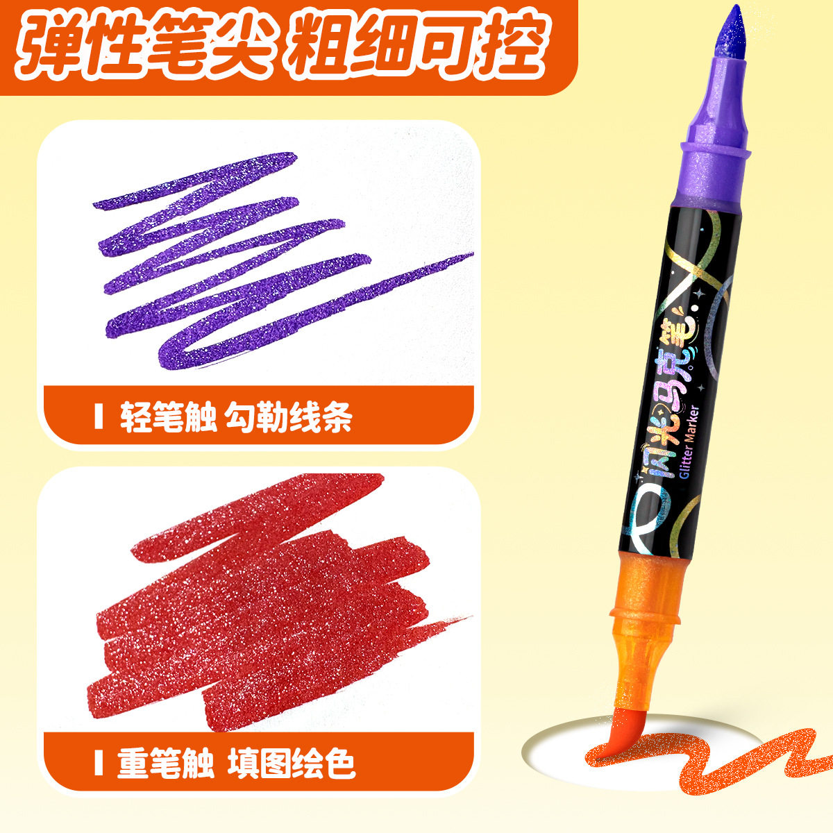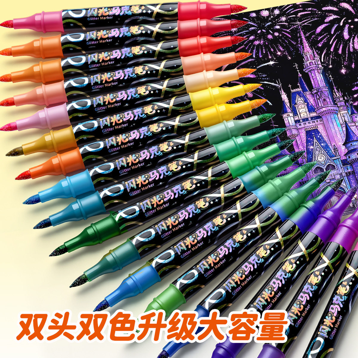 📚 真彩双头闪光马克笔彩笔儿童软头啫喱美术笔绘画涂鸦画笔一笔两色