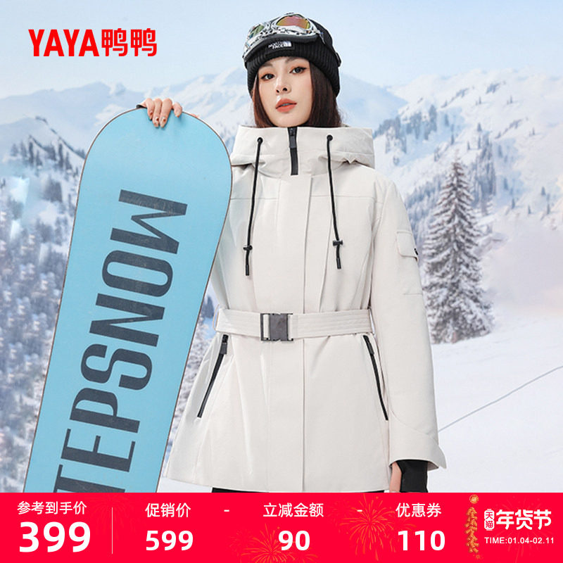 📚 鸭鸭2025年秋冬新款羽绒服女连帽时尚中长款鸭绒保暖工装厚外套Y