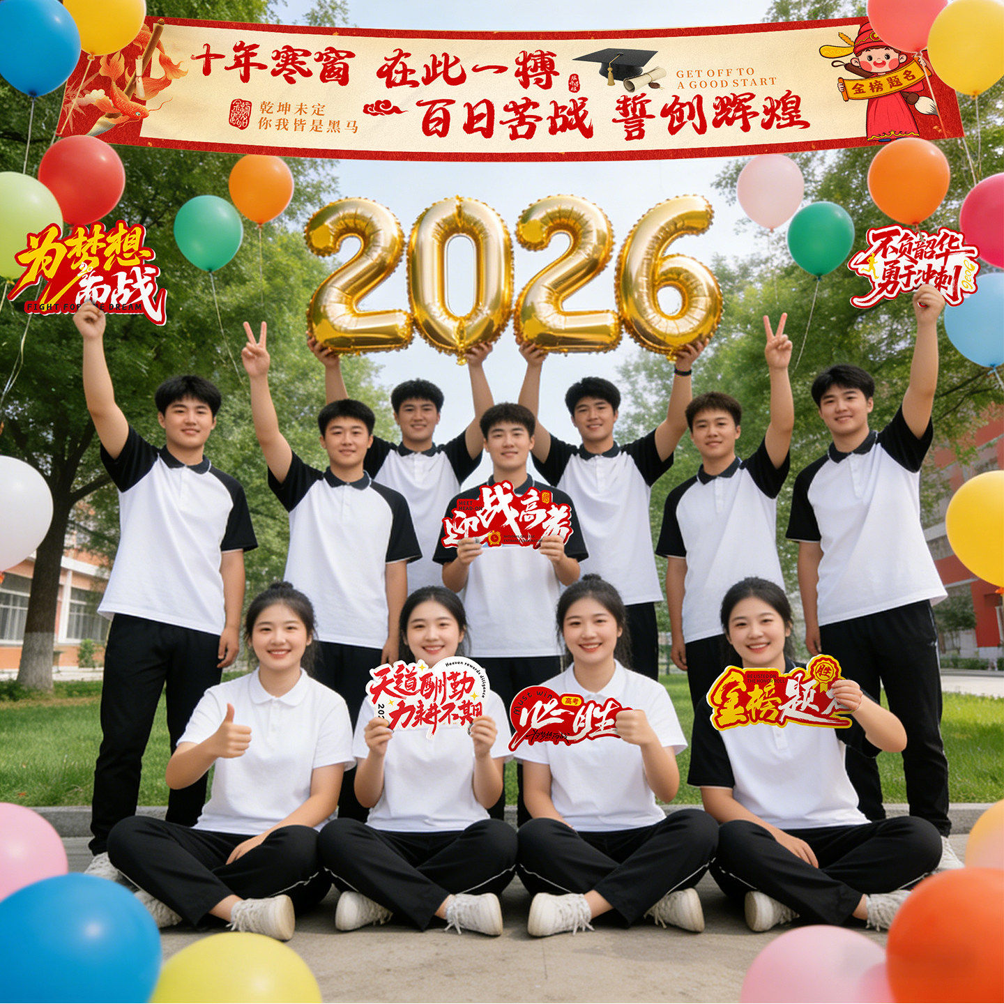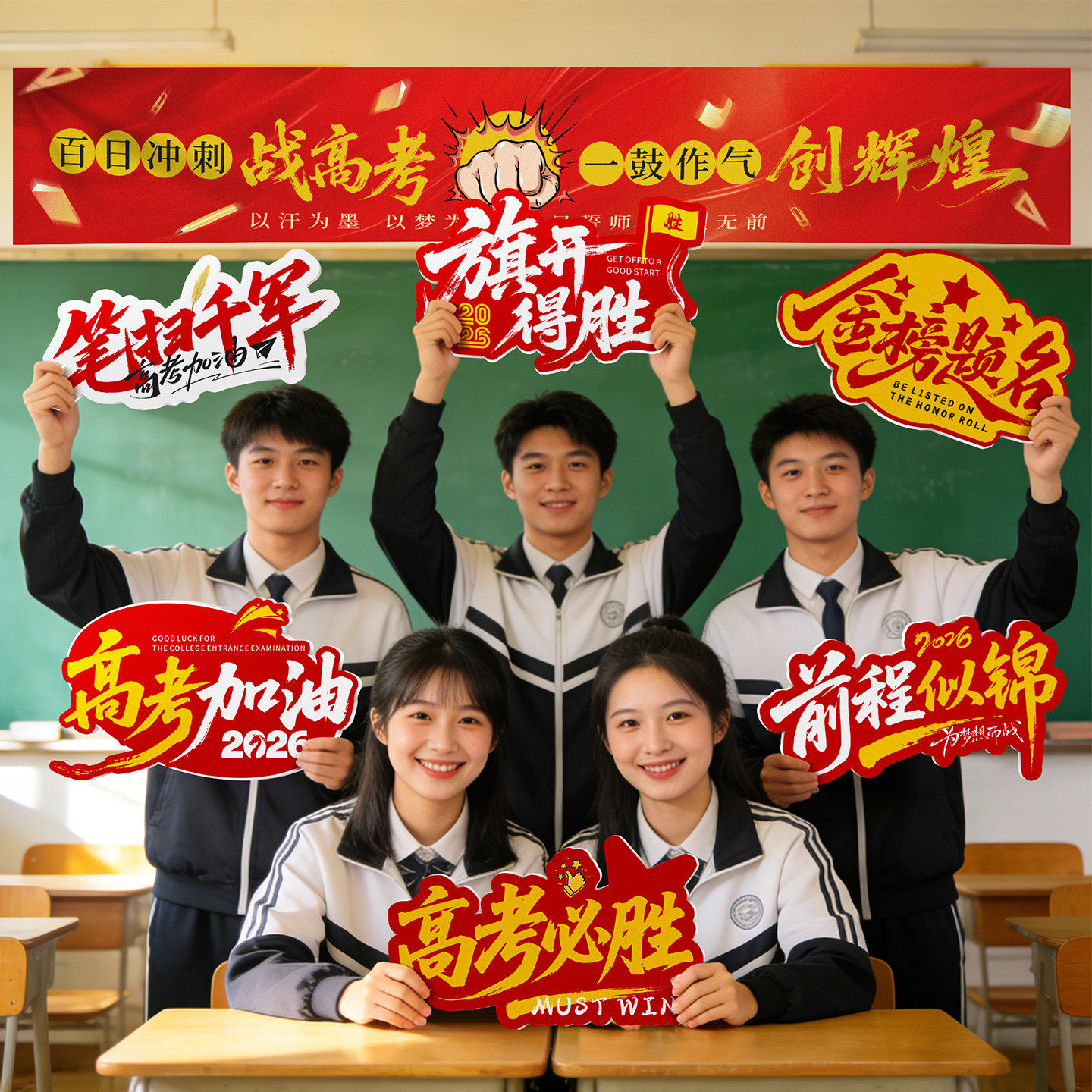 📚 百日冲刺中高考励志氛围装饰学校教室誓师手举牌KT板横幅场景布置