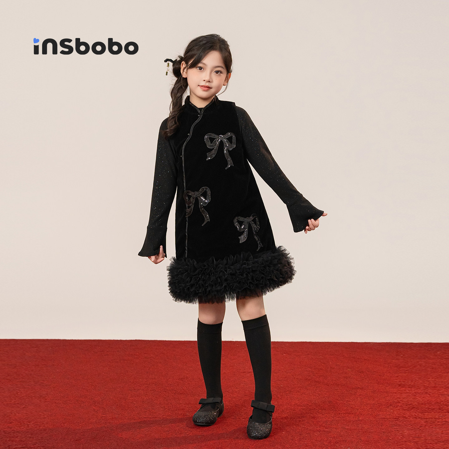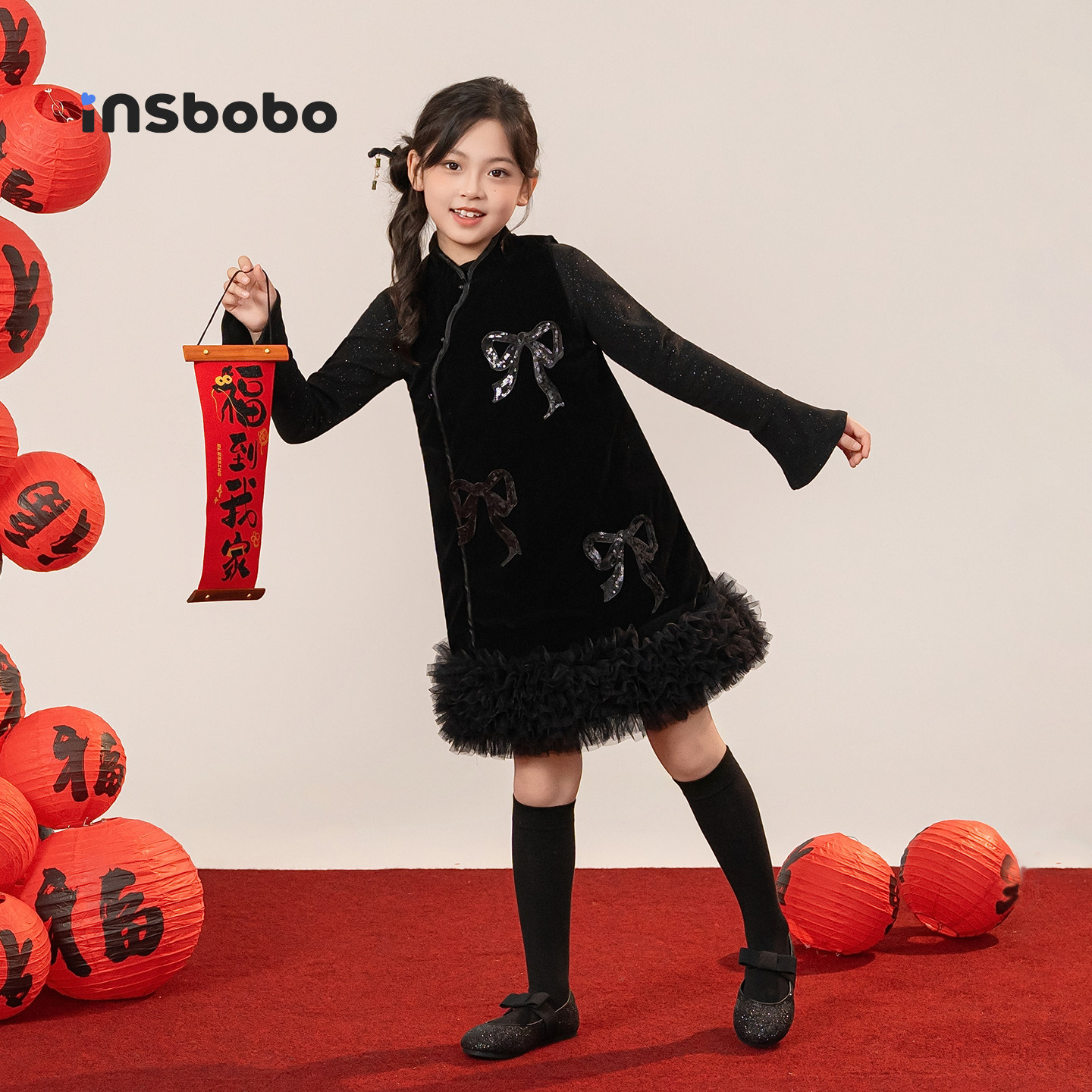 #女童连衣裙 #儿童旗袍裙 #新中式礼服 #拜年服 #黑色国风唐装 #汉服 #冬装裙子 #券后价175元