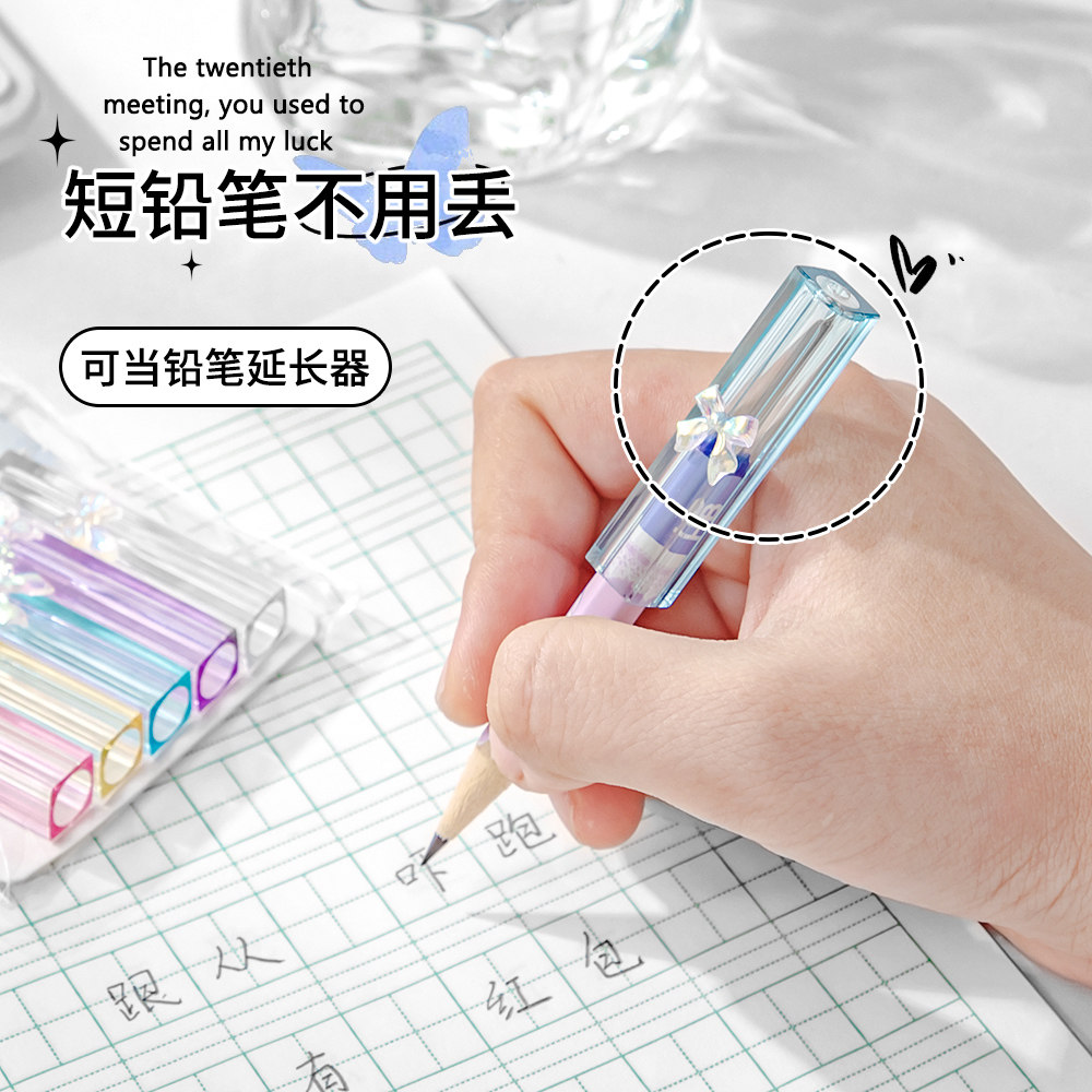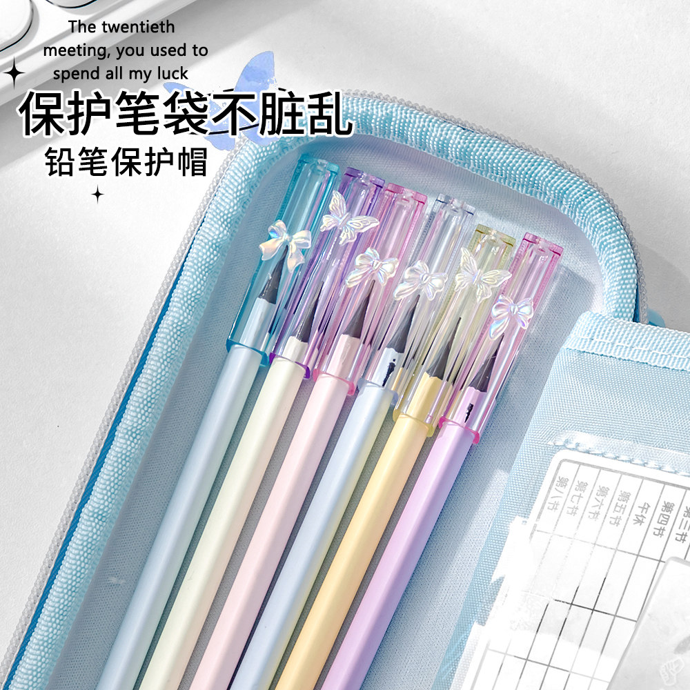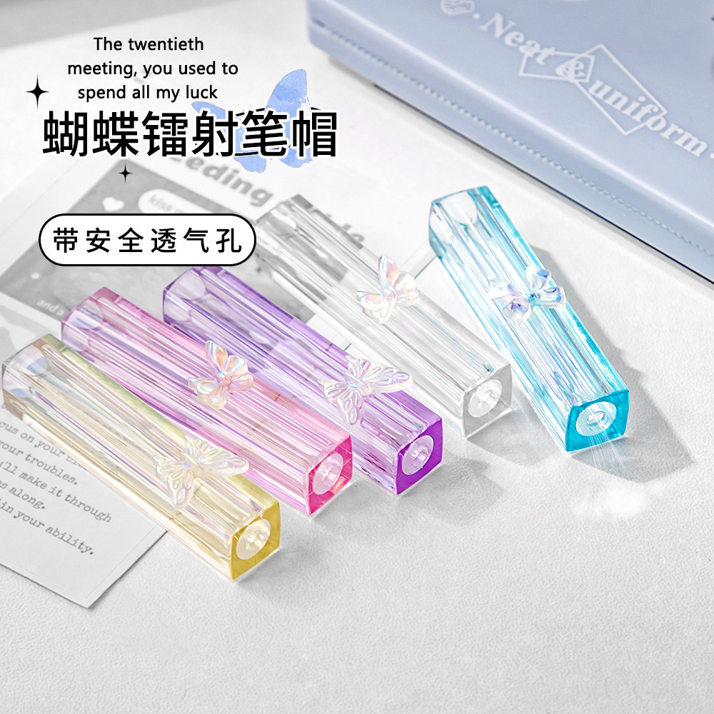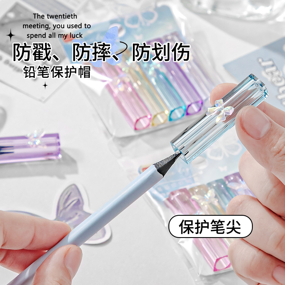 📚 镭射蝴蝶铅笔帽笔盖笔帽小学生铅笔保护套可爱风笔套浮雕高颜值ins风防丢三角洞洞铅笔延长器透明创意握笔器