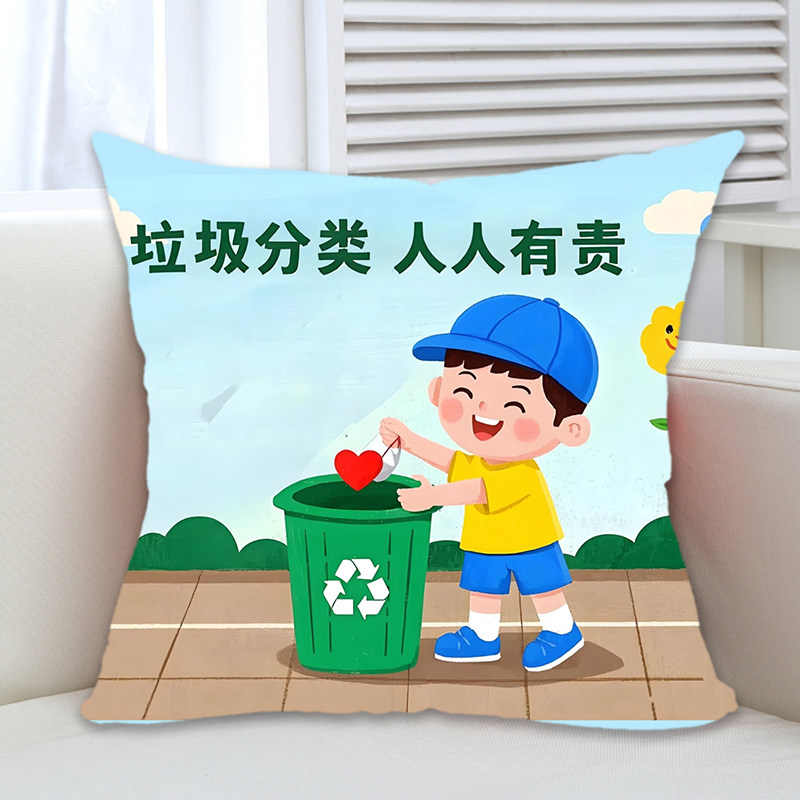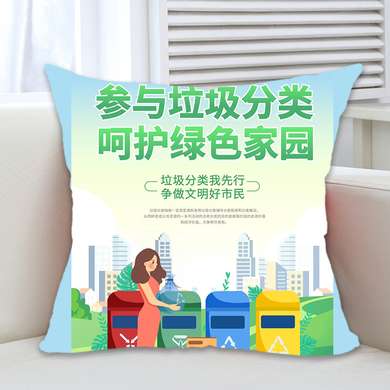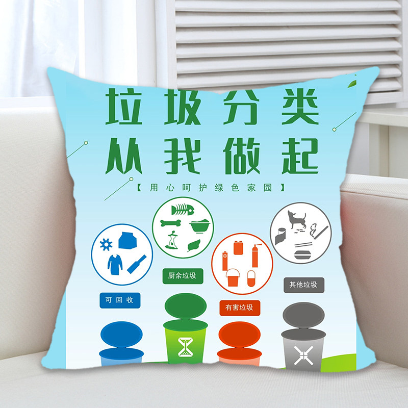 📚 社区街道办垃圾分类宣传礼品环保意识广告礼品抱枕沙发靠垫枕定制
