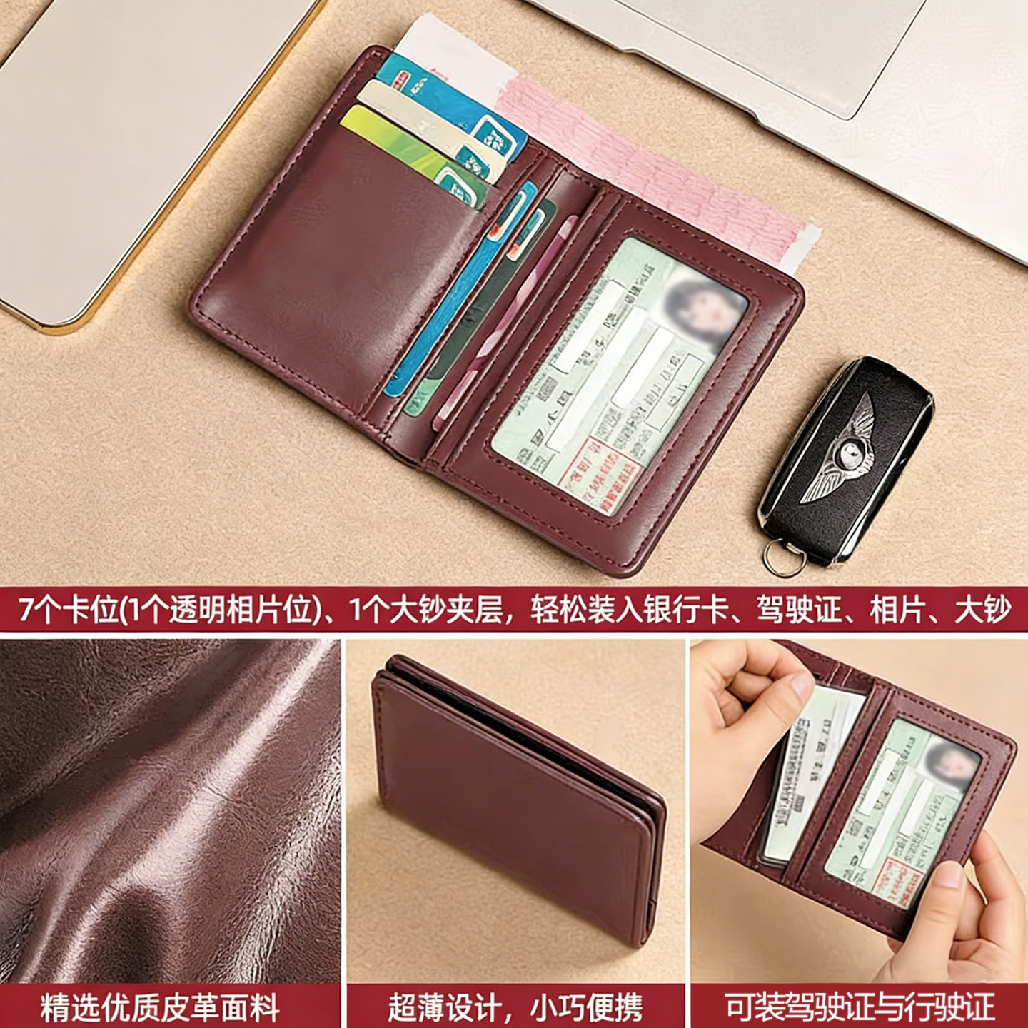 📚 超薄卡包男士高档小钱包一体多卡位简约证件卡套驾驶证皮套潮小巧