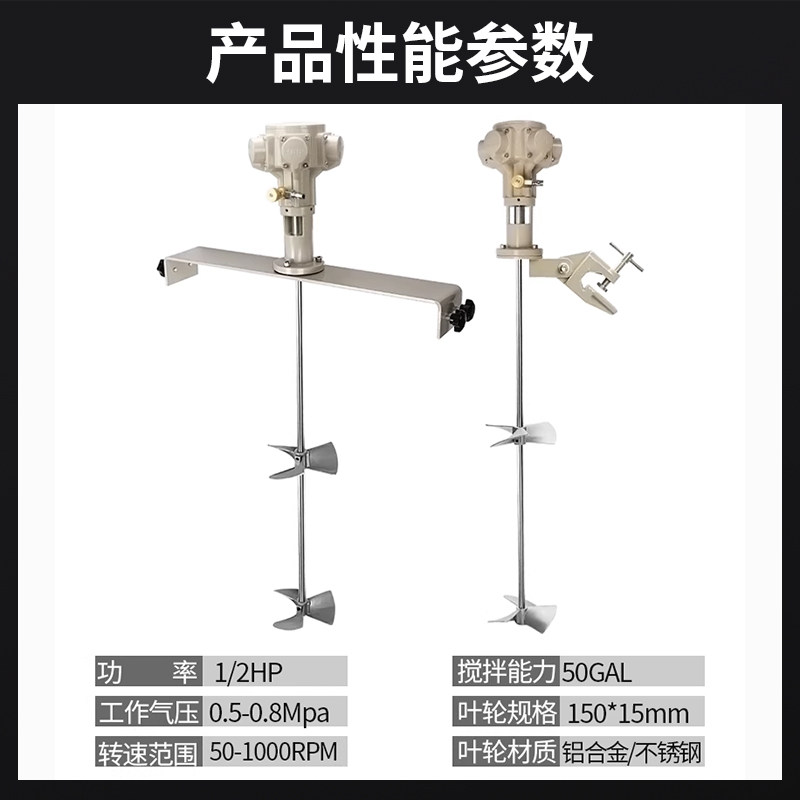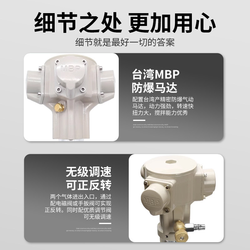 📚 台湾MBP50加仑防爆立式横板IBC吨桶气动搅拌机可调速油漆涂料油墨
