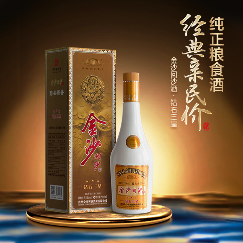 📚 金沙回沙酒 钻石三星 53度酱酒 500mL*6瓶 整箱装 酱香型纯粮白酒