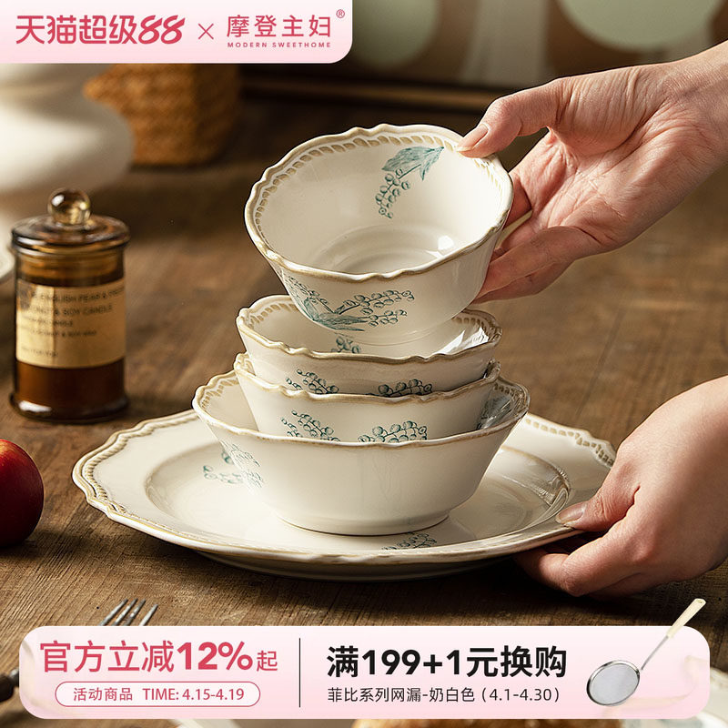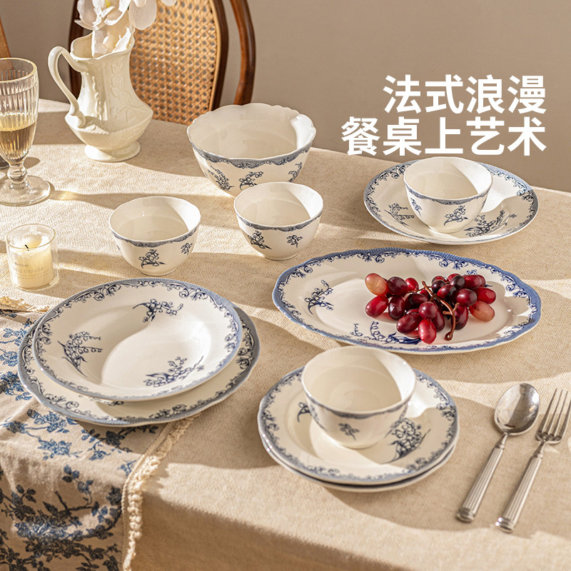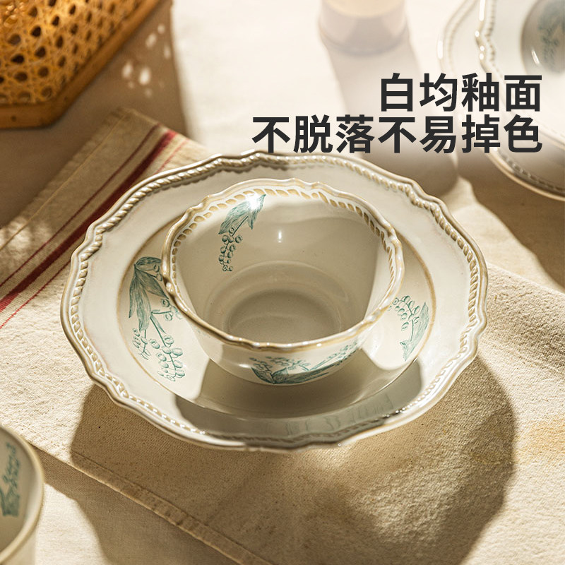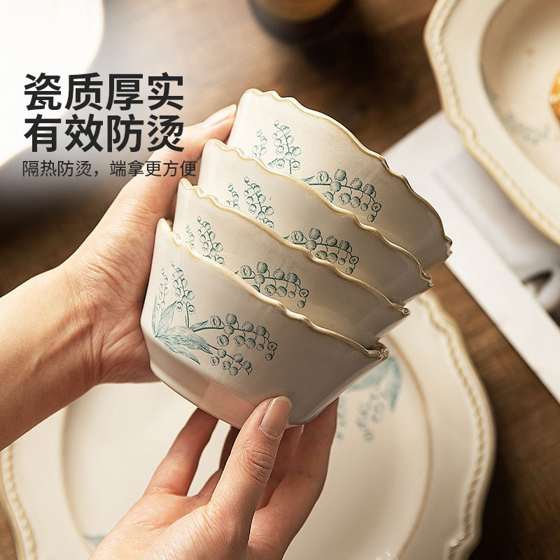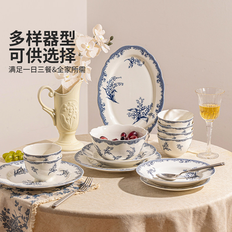 📚 摩登主妇法式铃兰餐具家用2026新款釉下彩饭碗具vintage中古盘子