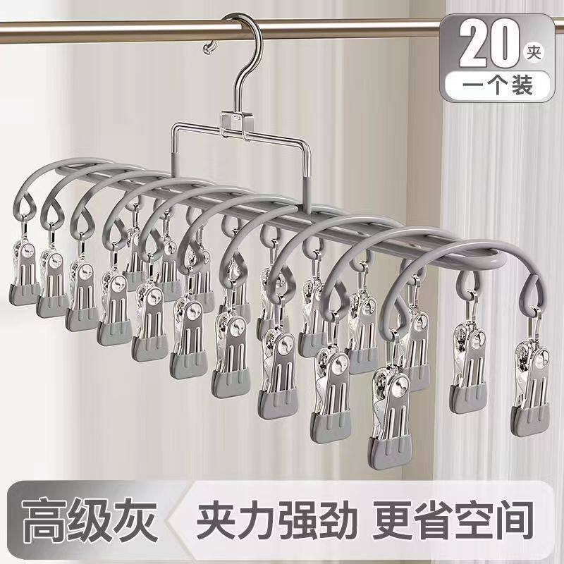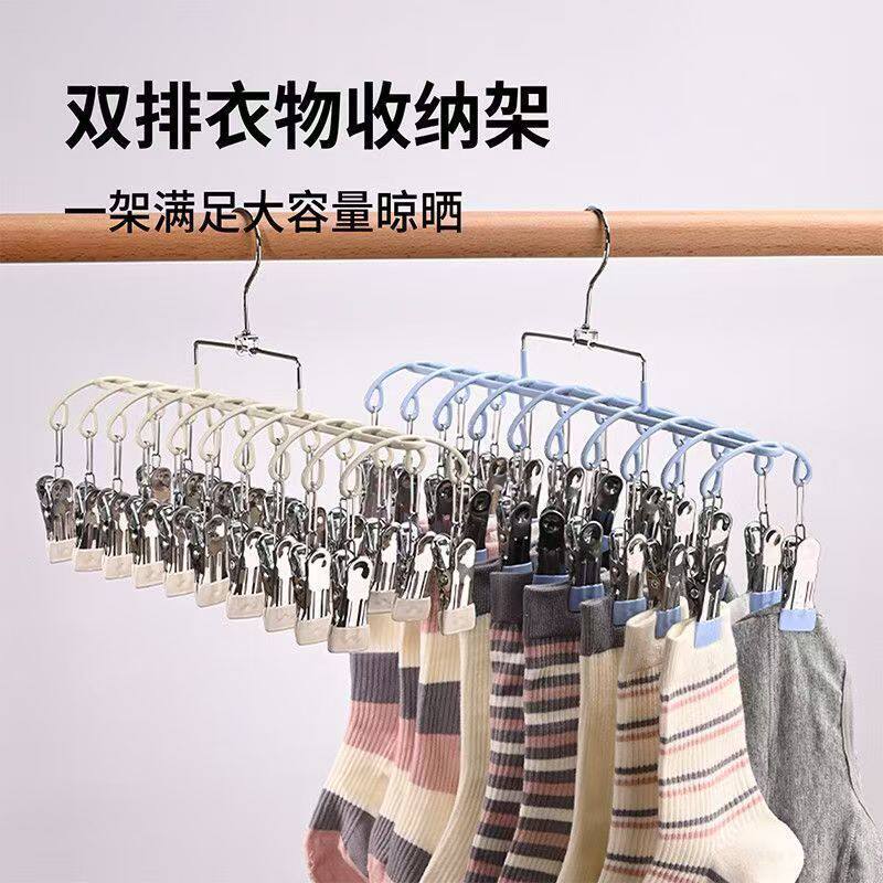 📚 【双排20夹】不锈钢袜子晾晒夹子家用无痕多功能晾衣架阳台防风