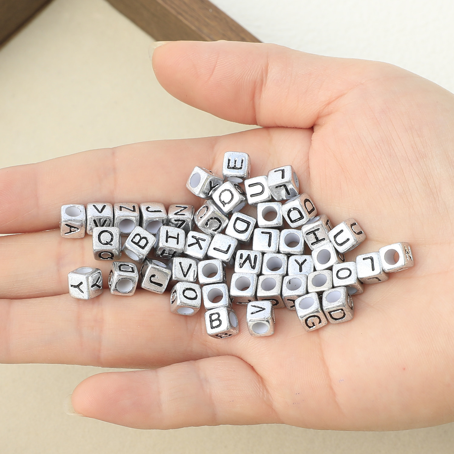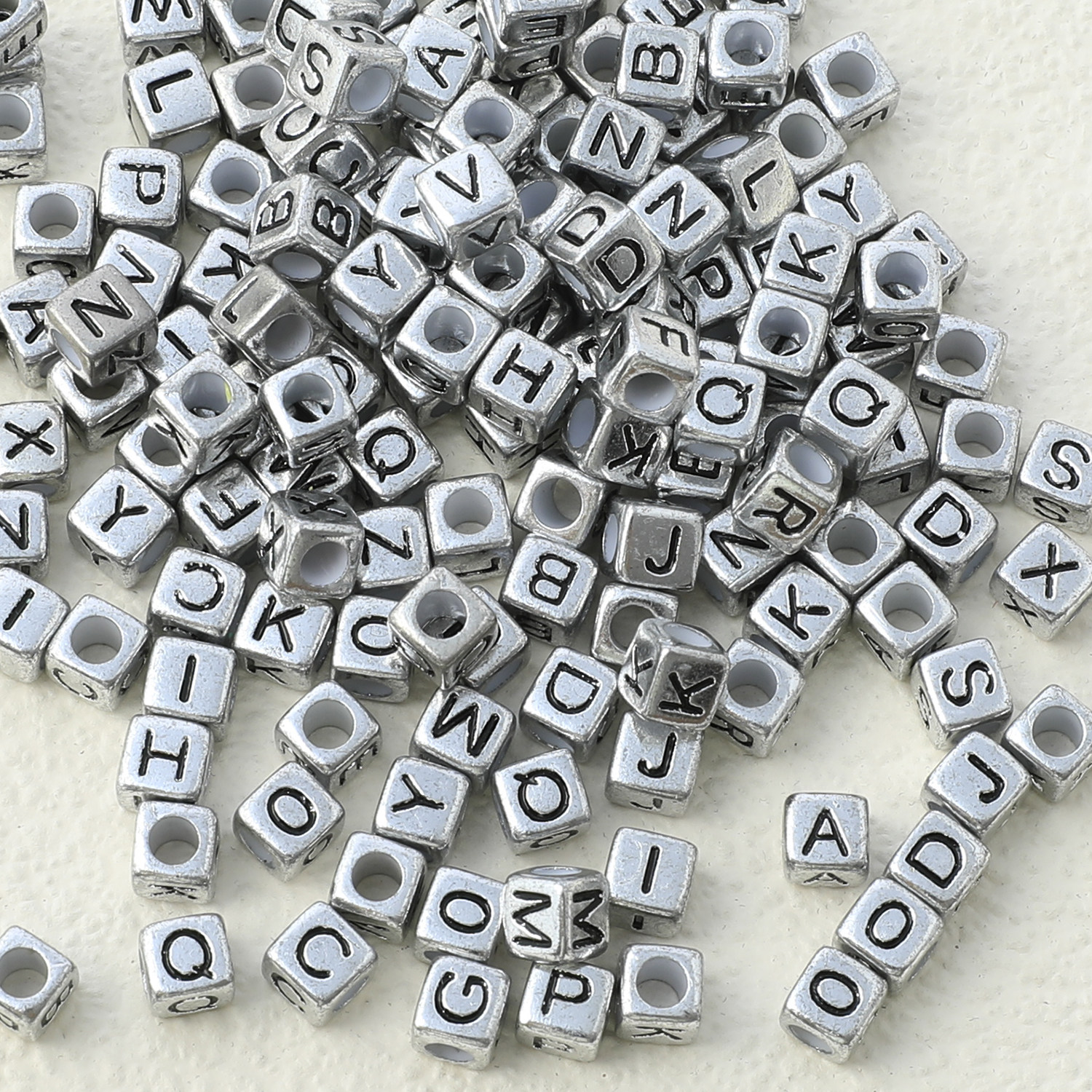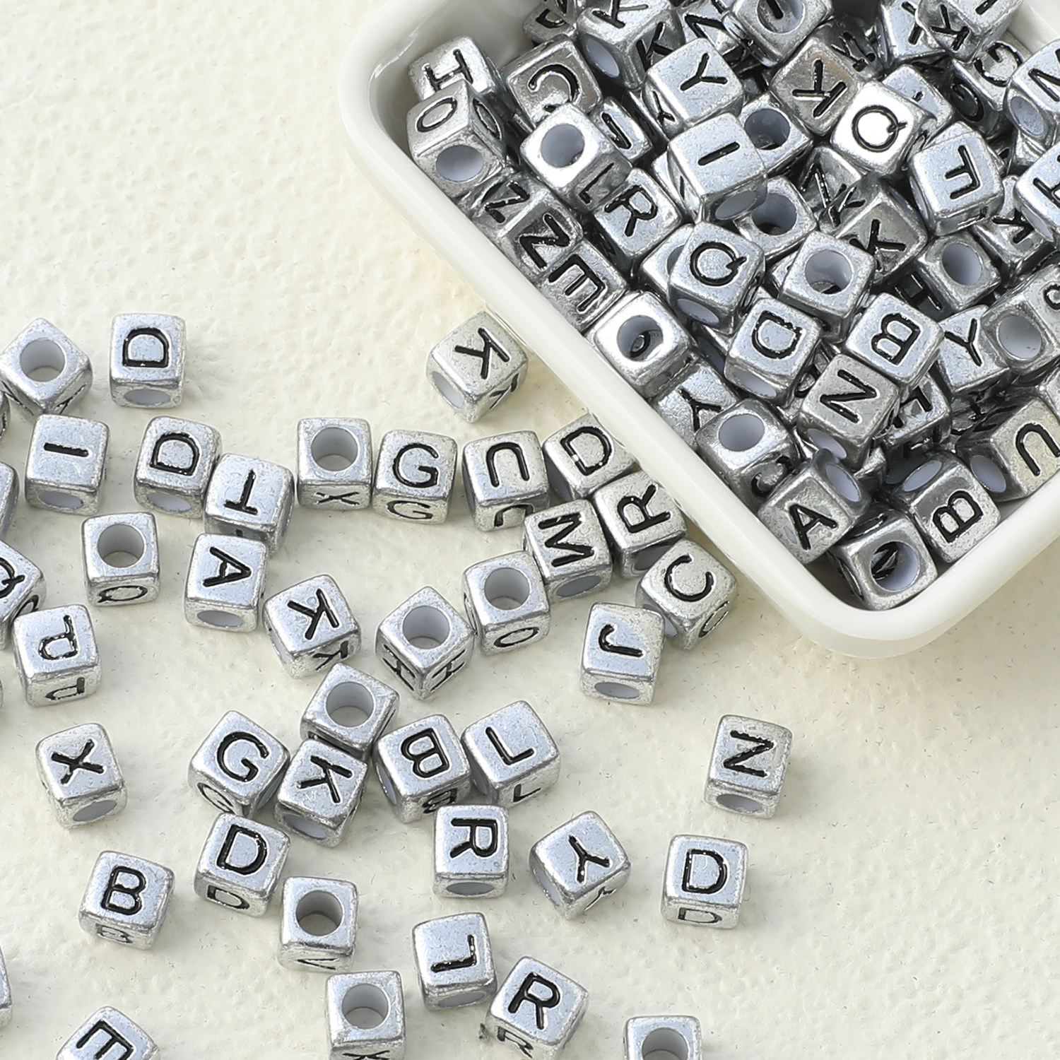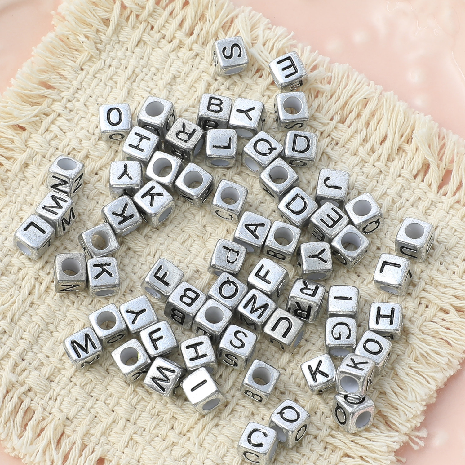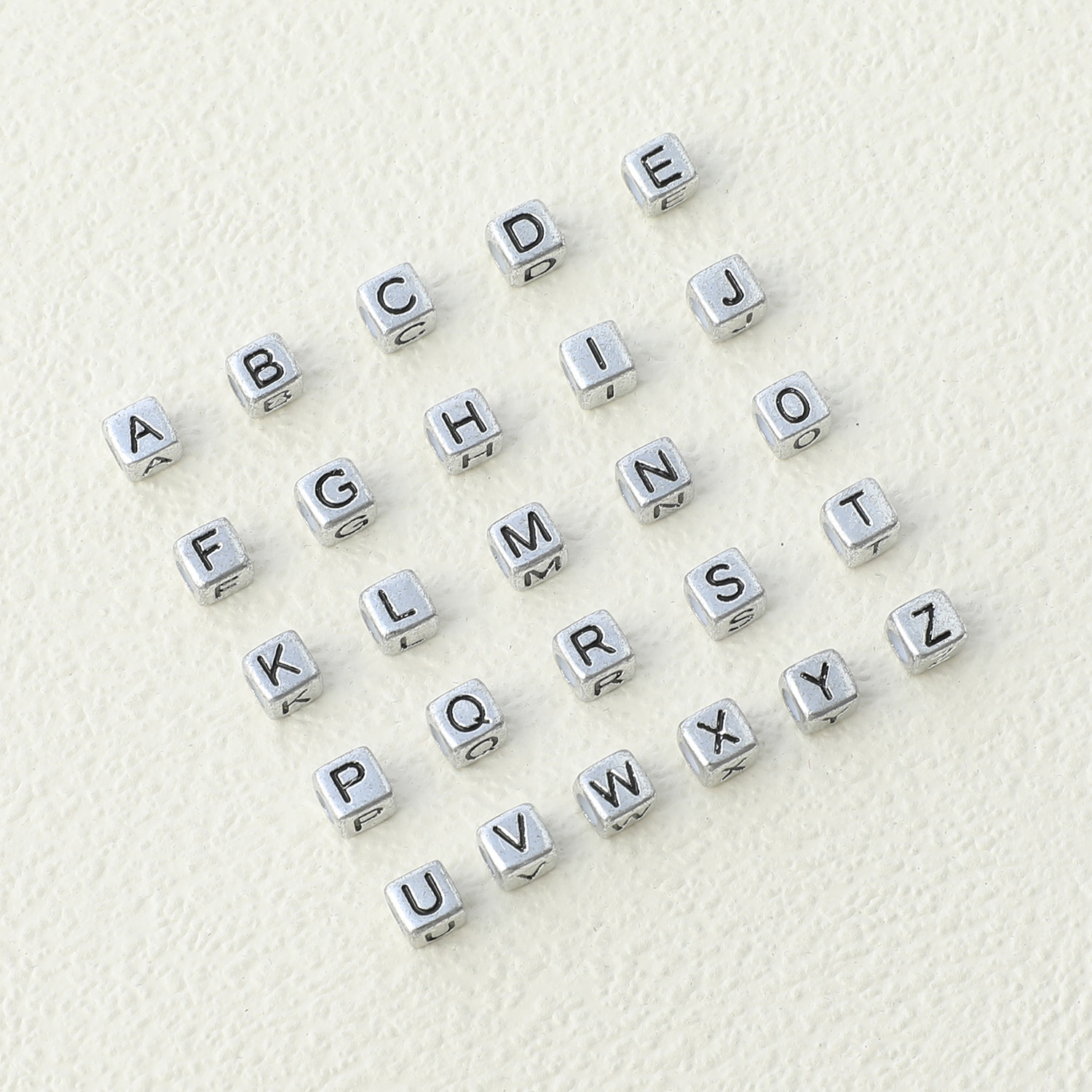 📚 5克6x6mm方珠古银英文单字母复古散珠DIY手链项链手机链串珠材料