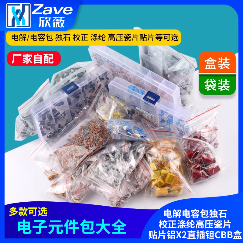 📚 电子元件包 电解电容包独石校正涤纶高压瓷片贴片铝X2直插钽CBB盒