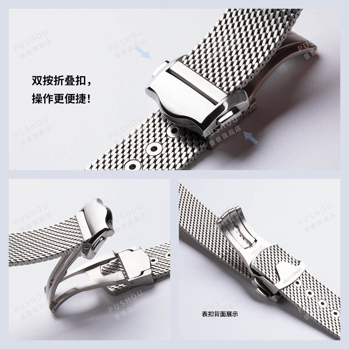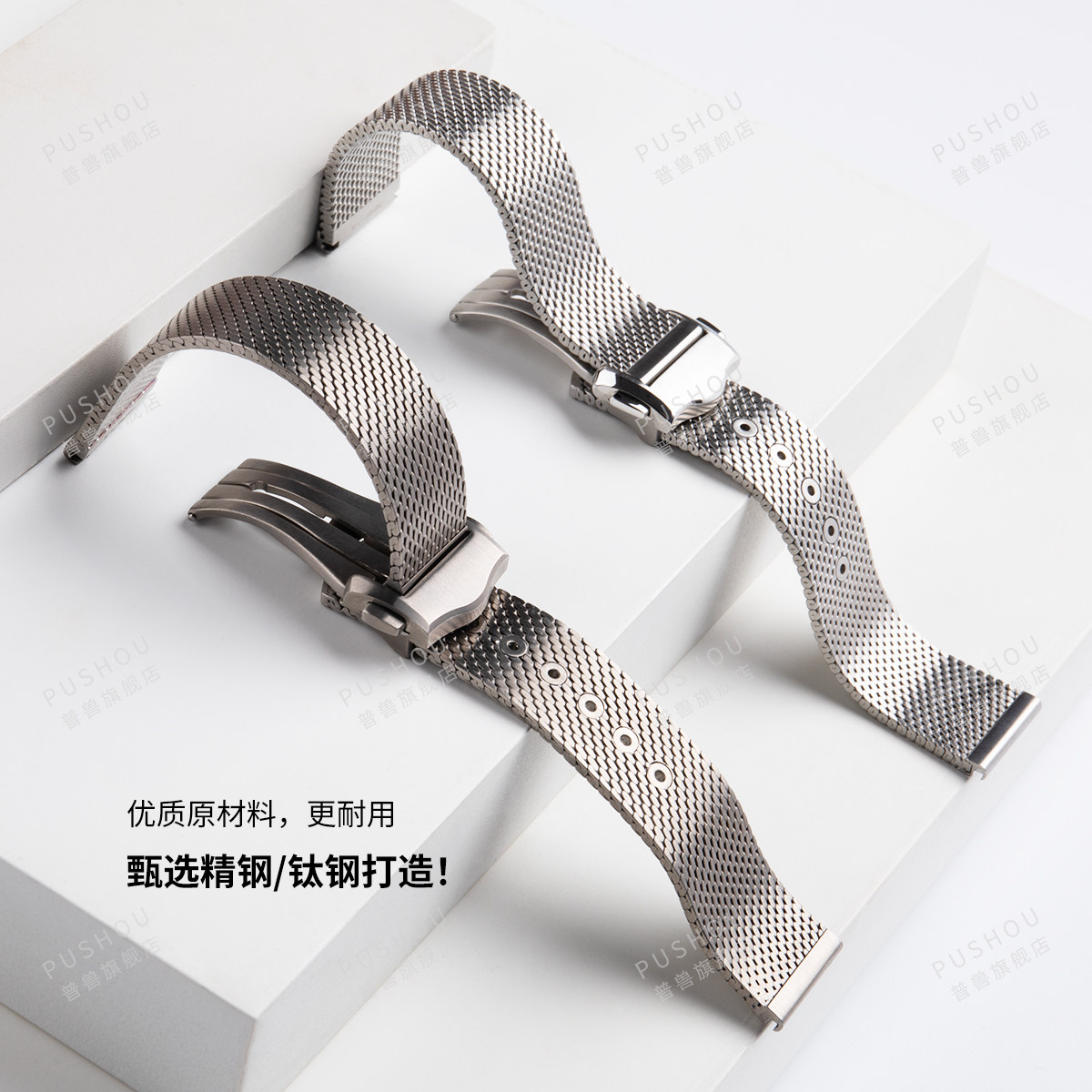 📚 钛钢米兰手表带适用欧米茄AT150海马300超霸007折叠扣无暇赴死男