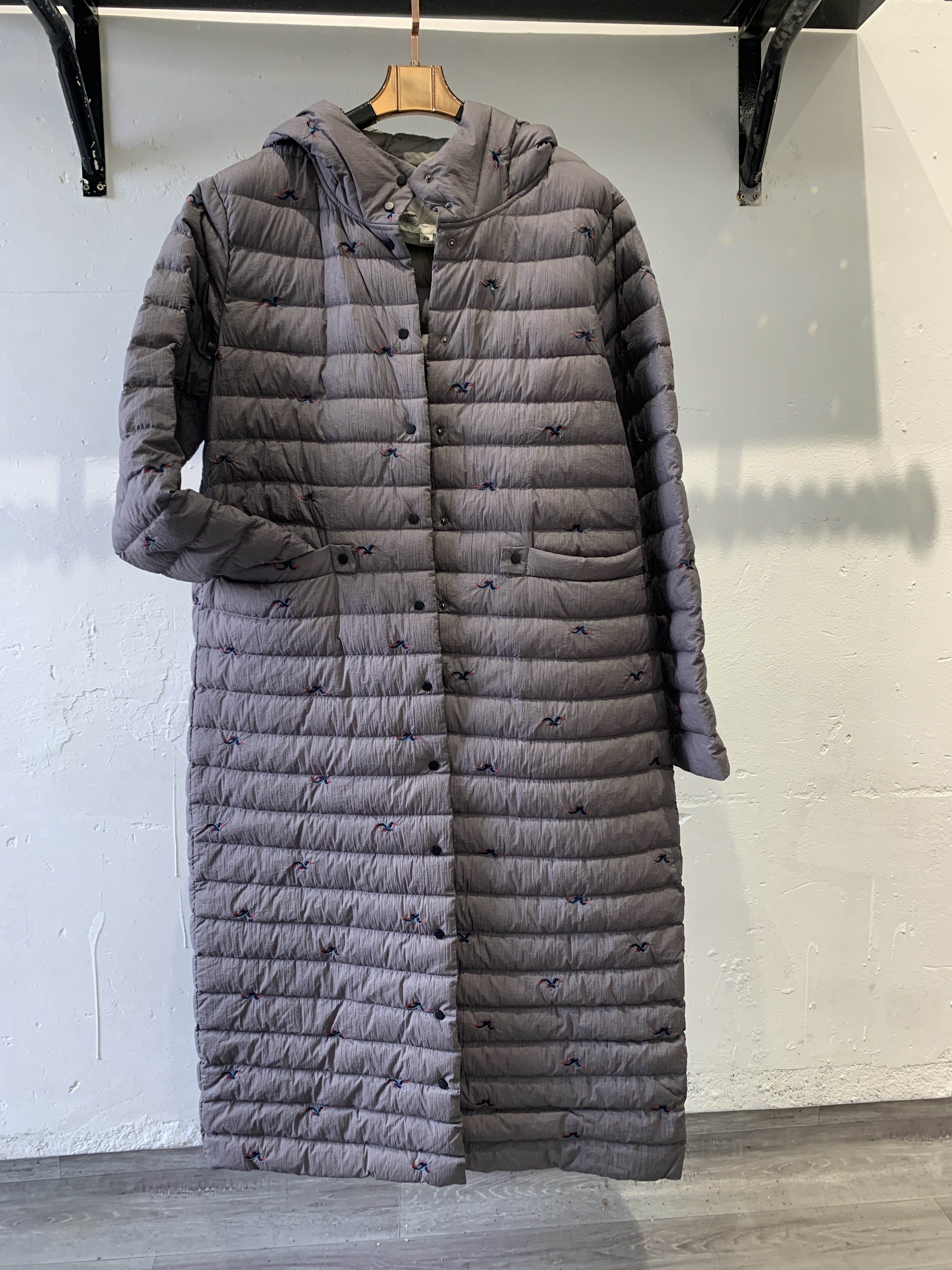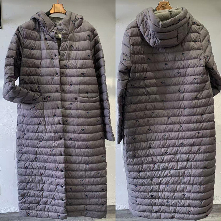 中长羽绒服轻薄小花复古