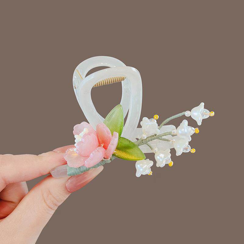 📚 玉兰皎皎白~古风花朵抓夹超仙温柔后脑勺盘发鲨鱼夹头饰发夹发卡