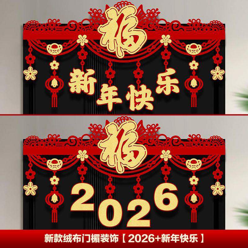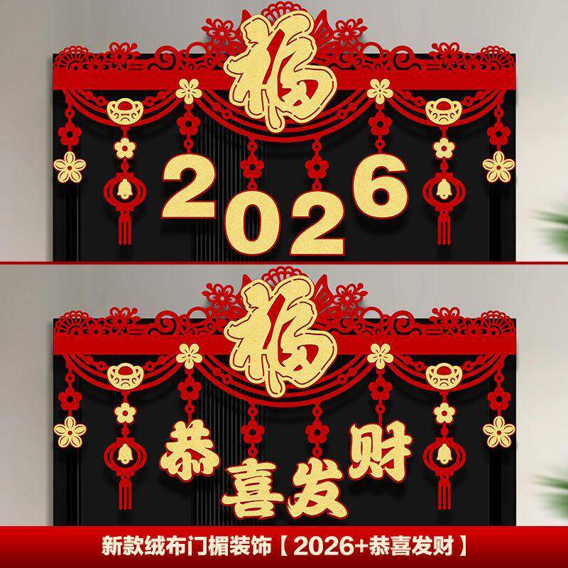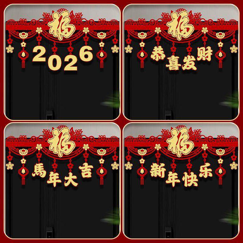 📚 译墨百货店2026新款马年福字挂件家用加厚绒布新年春门楣装饰拉花