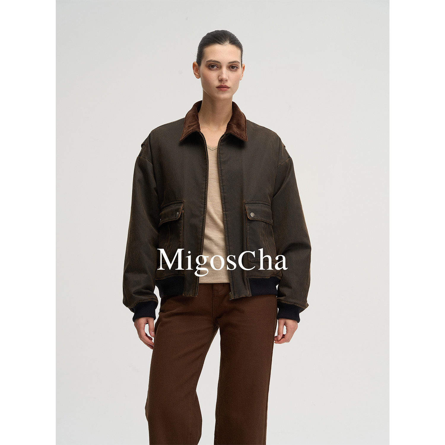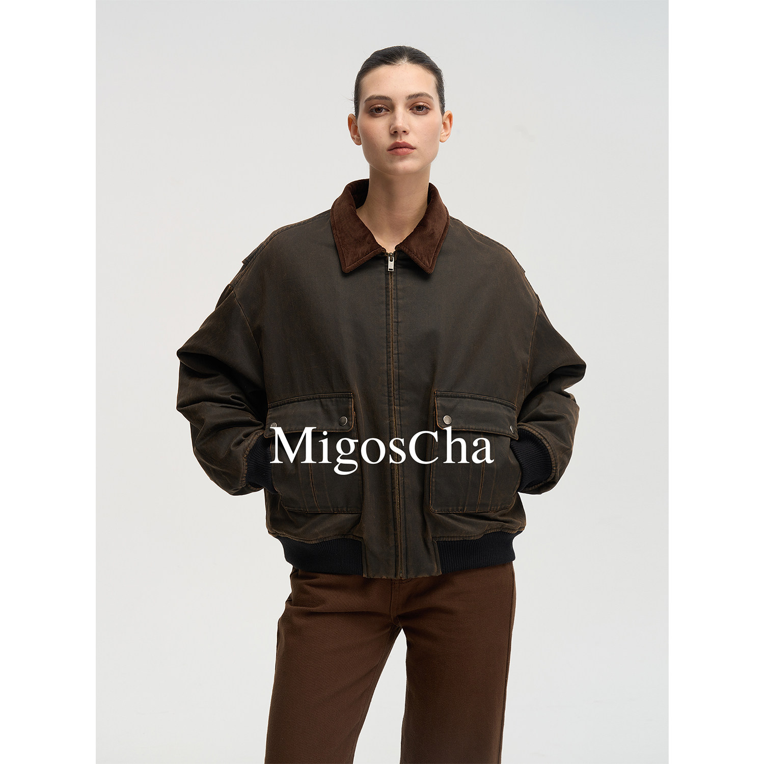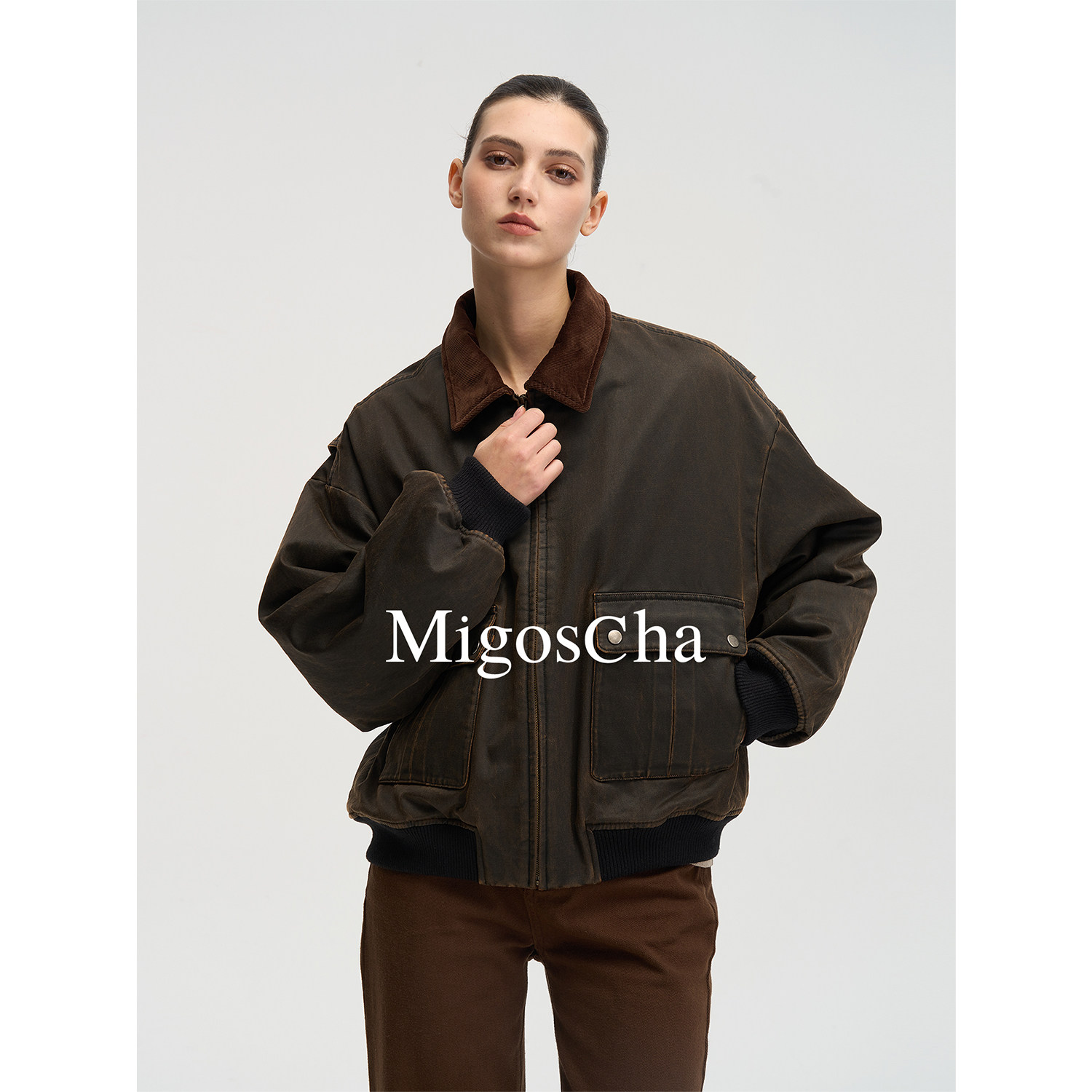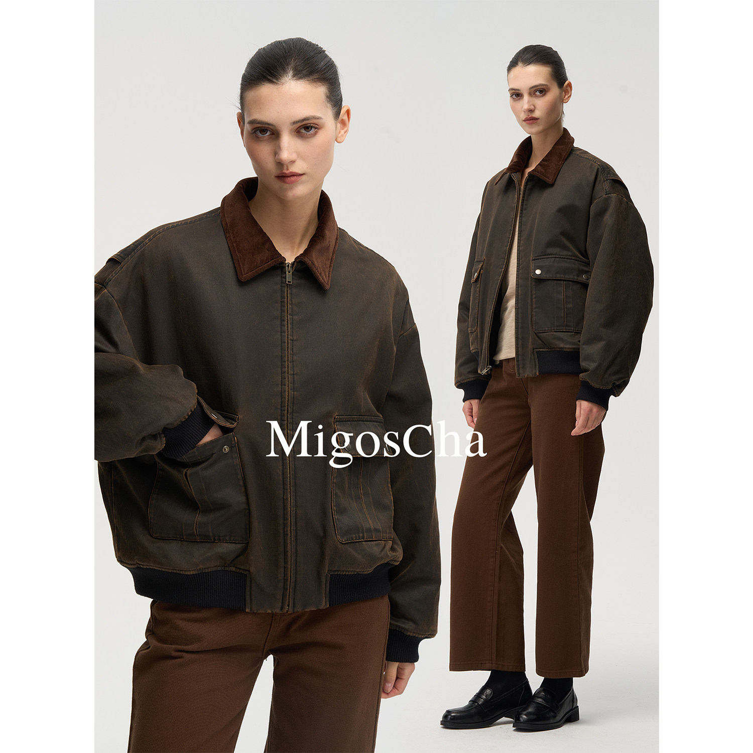📚 migoscha 复古板栗色水洗工装白鹅绒短外套2025冬季新款