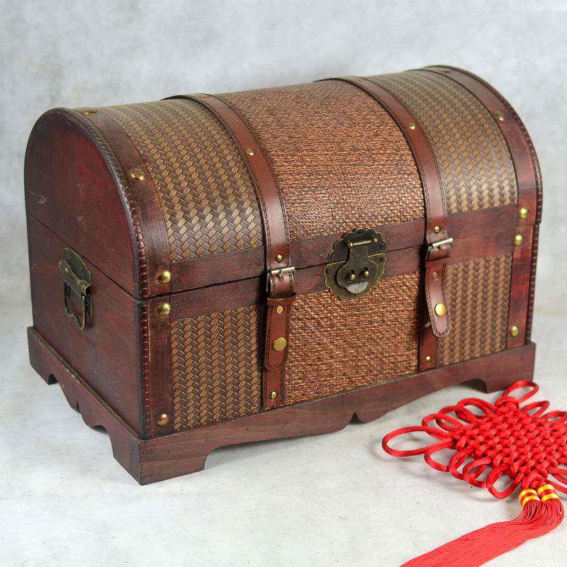 📚 仿古典古中老式木箱子百宝箱木质收纳整理箱服式具装店复F0214道