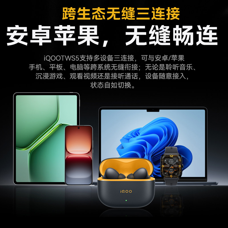 📚 vivo iQOO原装TWS5真无线耳机蓝牙主动降噪低延迟48小时超长续航