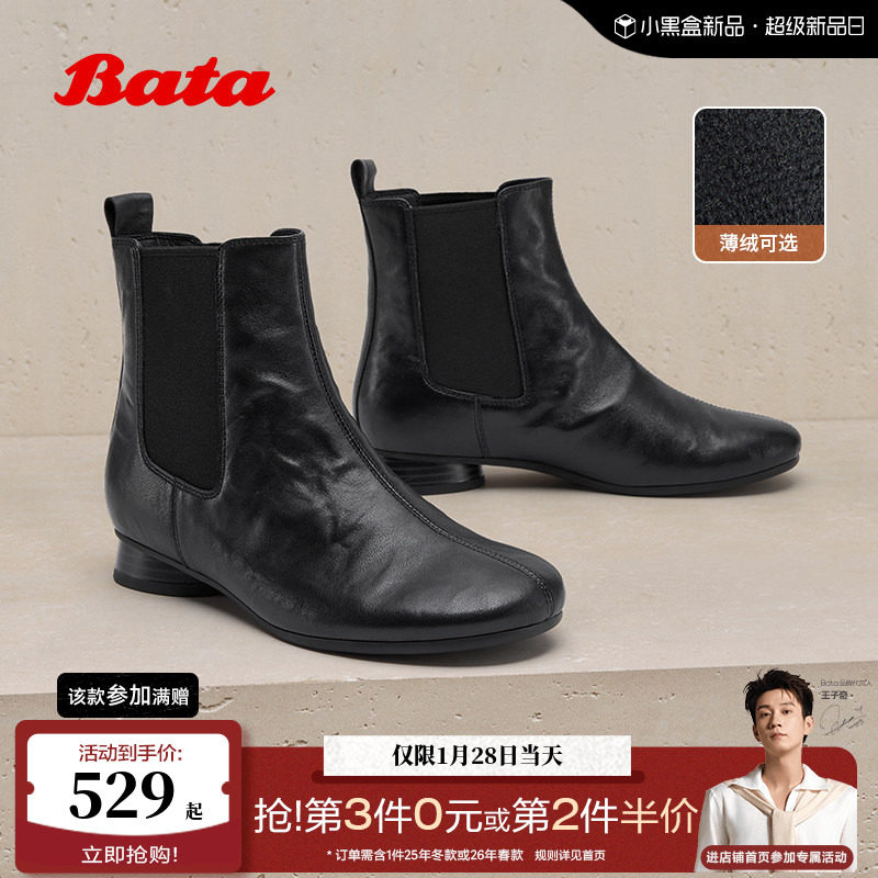 📚 Bata圆舞曲切尔西2025冬商场新款羊皮通勤加绒短筒时装靴ABC40DD5