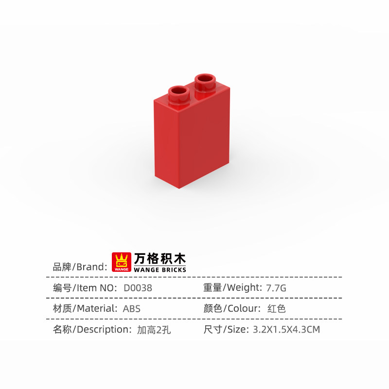 📚 万格大颗粒积木墙兼容基础配件加高2孔零件厚砖拼装玩具散件D0038