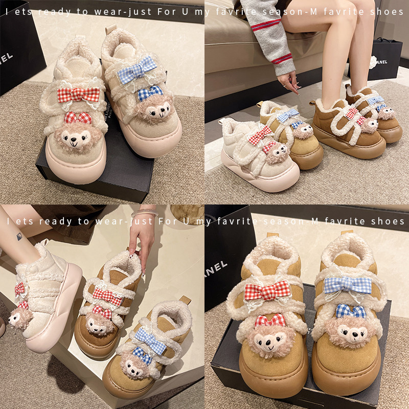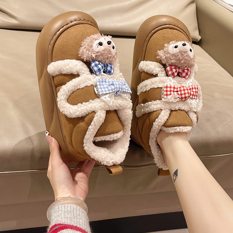 📚 AKM小白棉鞋冬季新款宿舍保暖平底厚底猫可爱室内包跟雪地靴