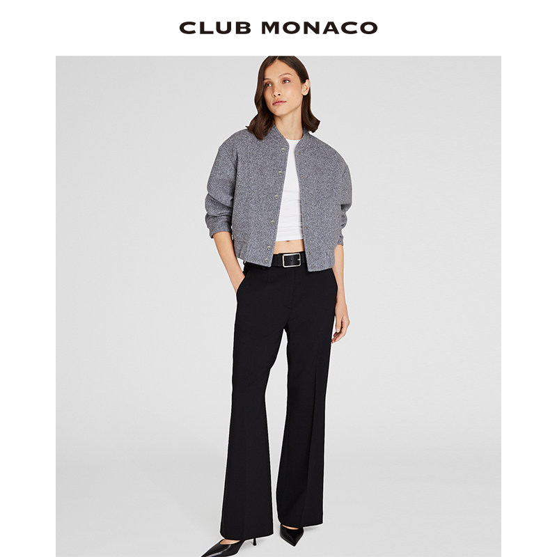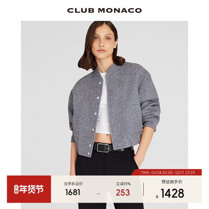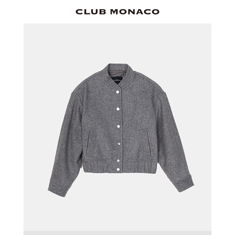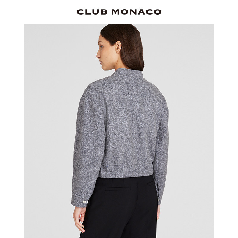 📚 CLUB MONACO羊毛混纺女装立领人字纹时髦运动休闲毛呢短外套