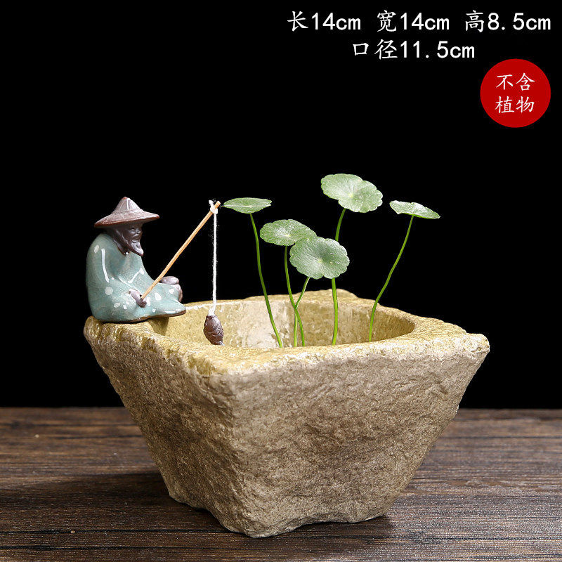 📚 水仙花铜钱草水培花盆水养的仿石头盆景碗莲睡莲个性创意陶瓷无孔