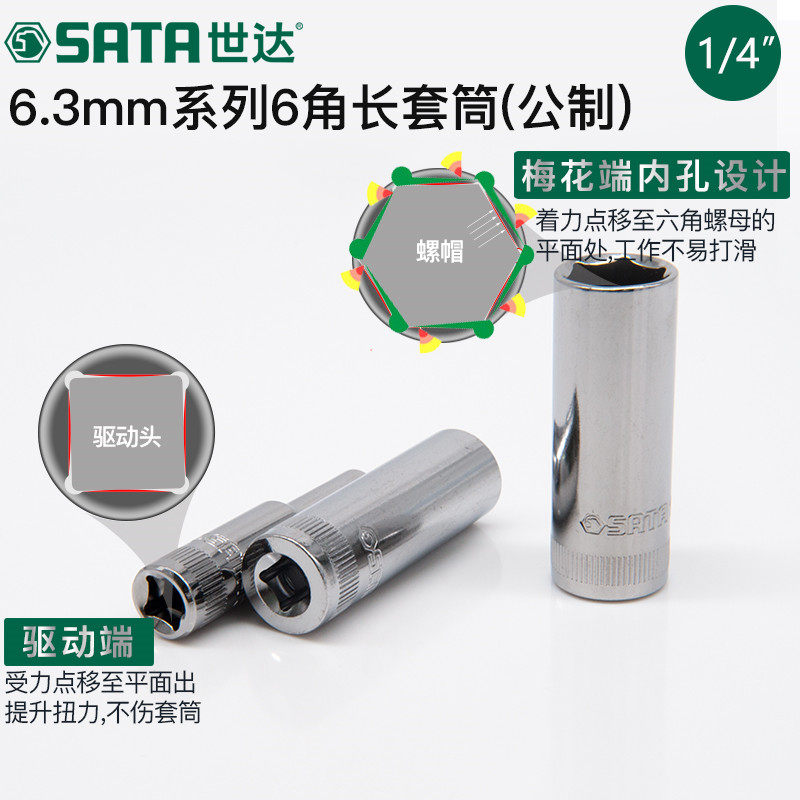 📚 世达小飞六角长套筒6.3mm加长套头1/4套筒头6号7/8/10/12/13工具
