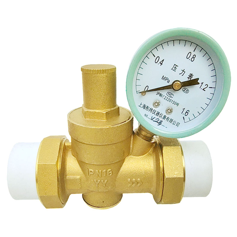 自来水管可调式减压阀压力表黄铜