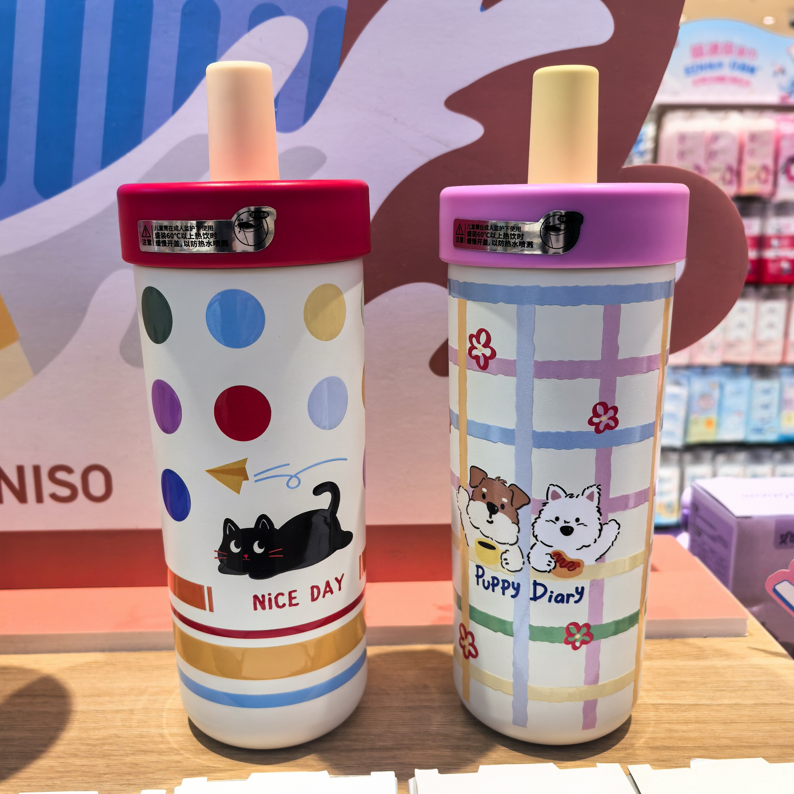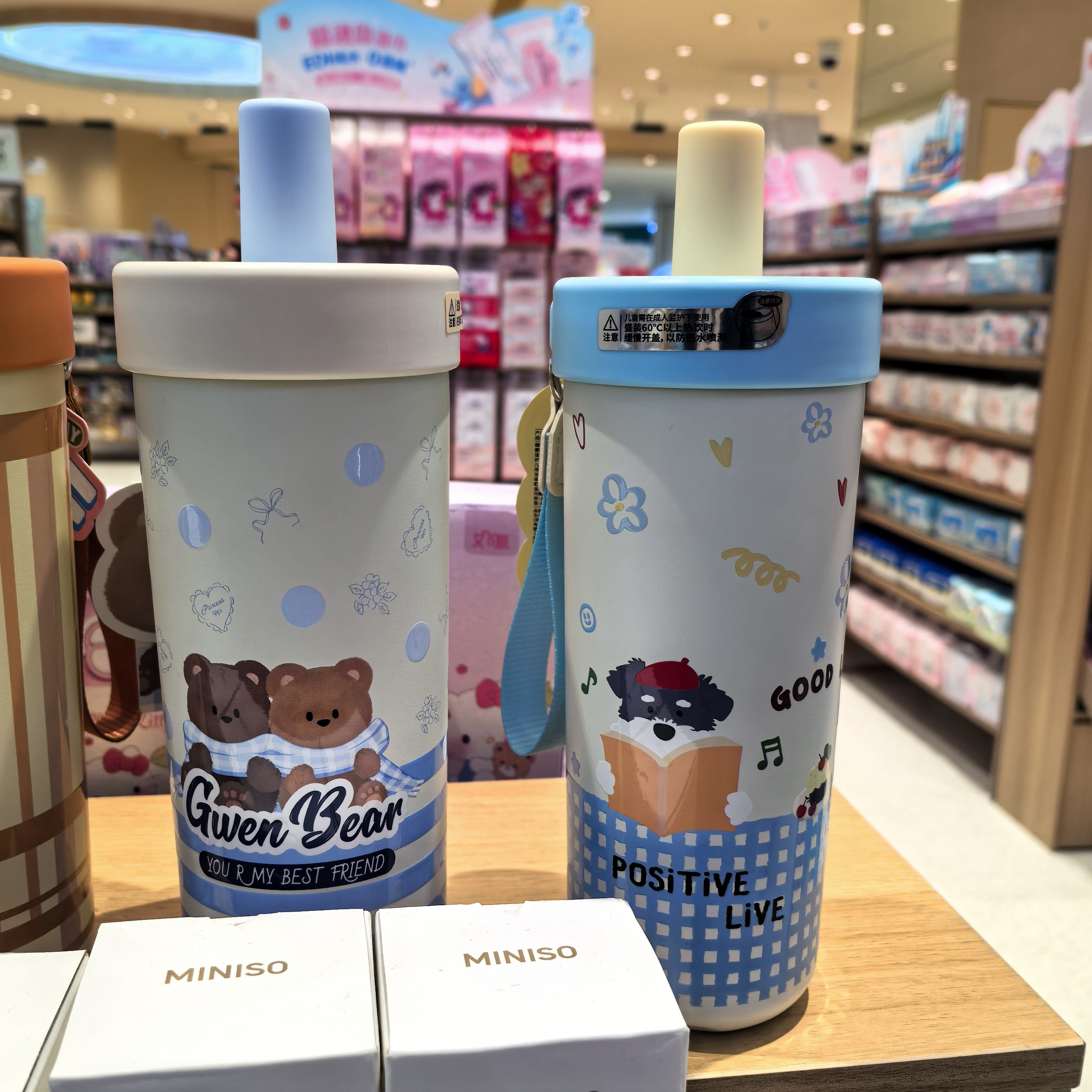 📚 去玩系列提绳吸管保温杯697mL 名创优品MINISO可爱卡通保温杯
