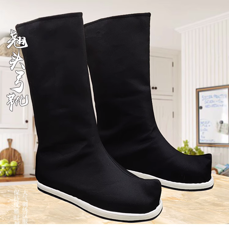 📚 古装鞋子男搭配汉服明制古风原创内增高翘头弓鞋武侠皂靴平底婚鞋