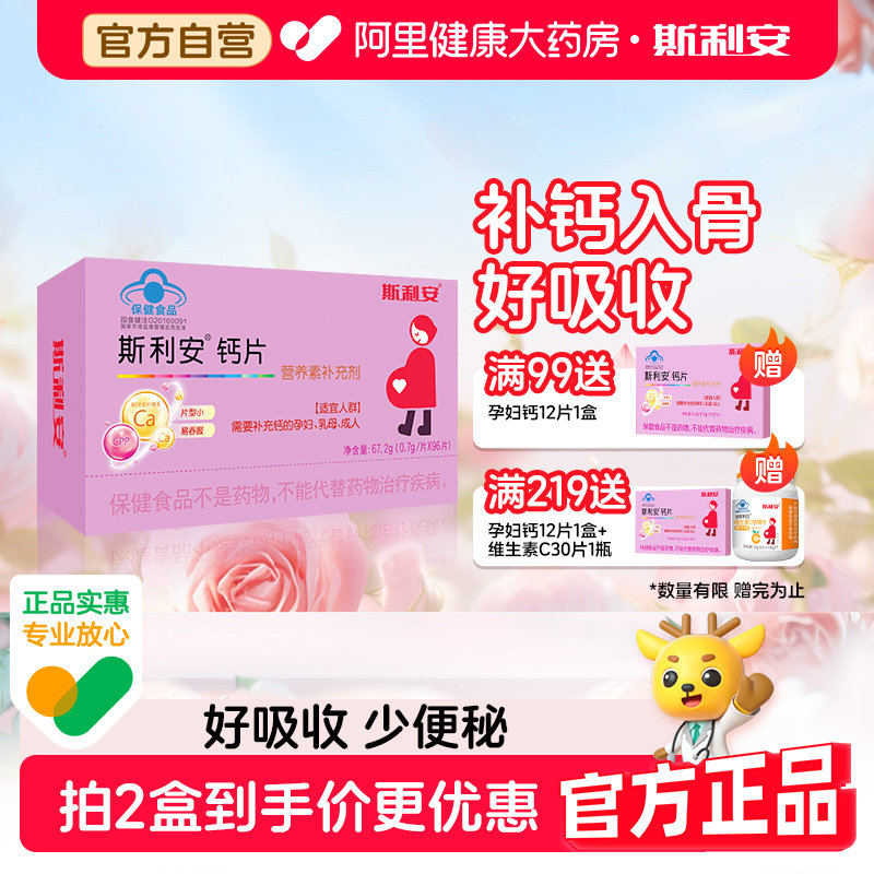 📚 斯利安孕妇钙片成人中期补钙型96片正品专用维生素官方铁锌孕期