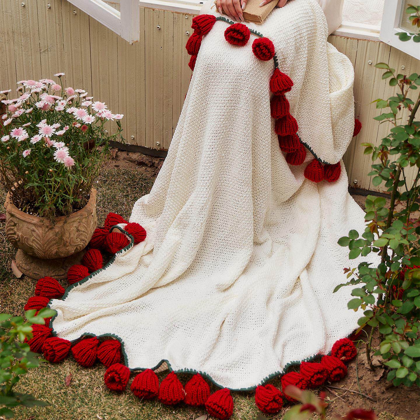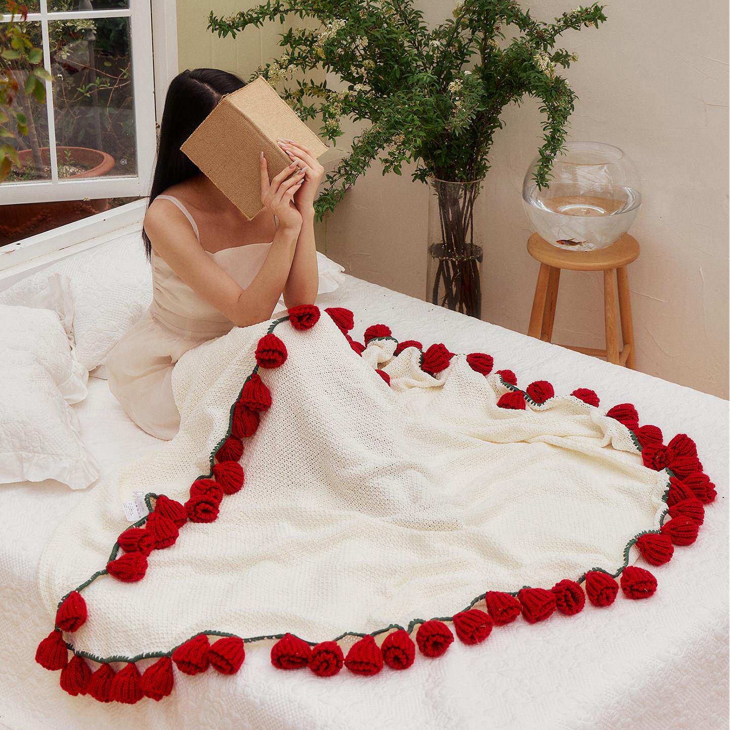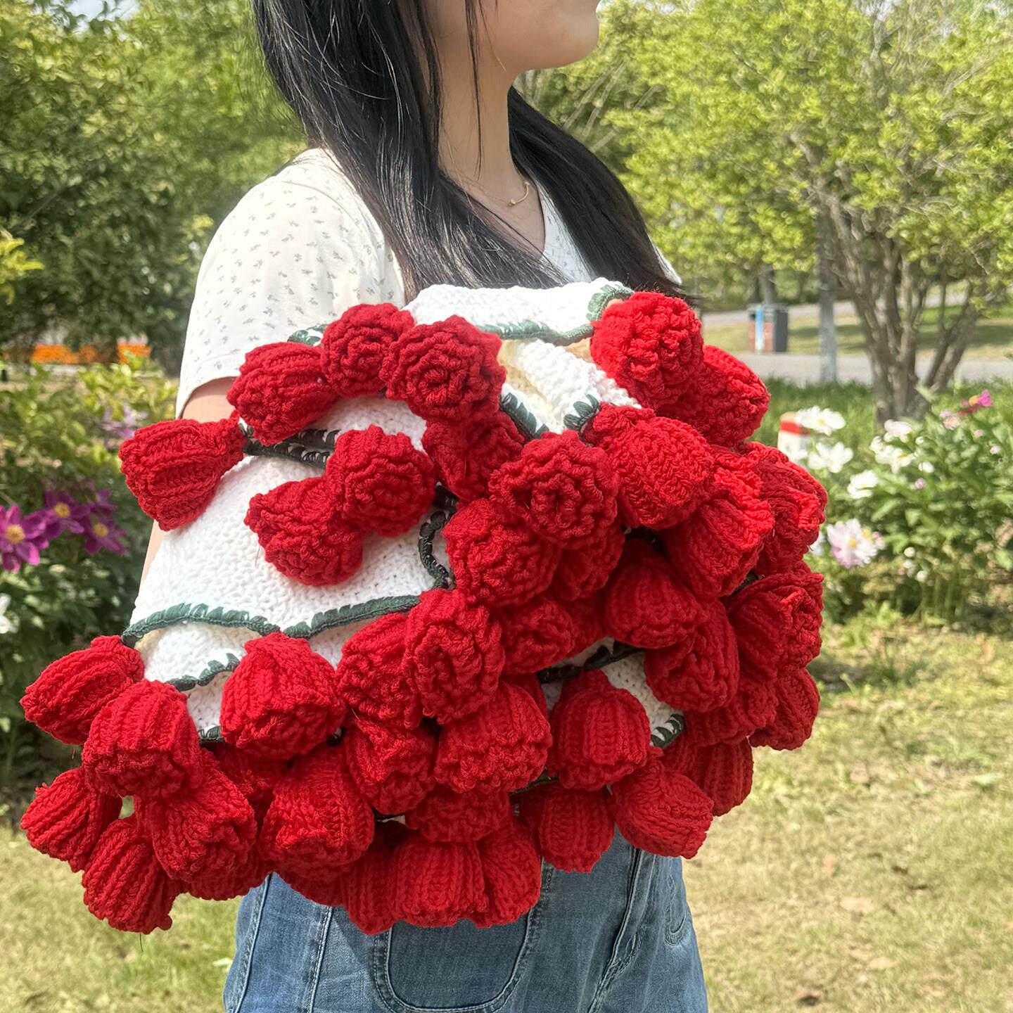 📚 玫瑰花毯子成品手工编织花朵毯子礼物办公室盖毯网红拍照花束毛毯