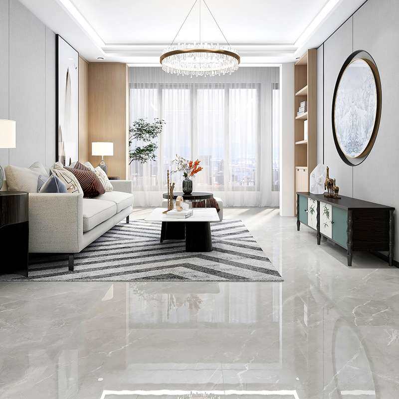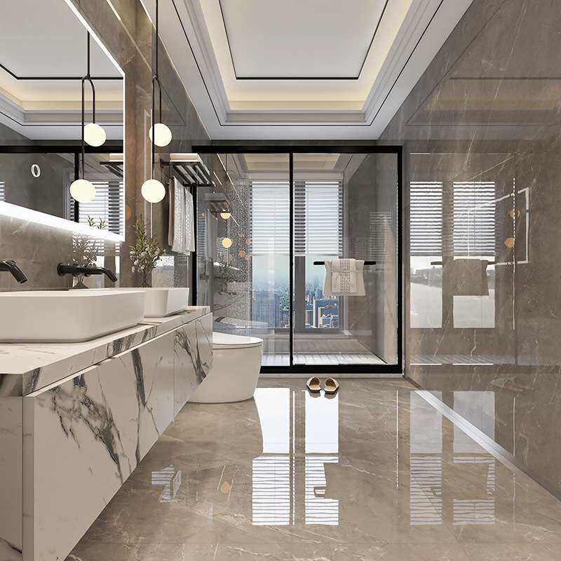 📚 750x1500大板瓷砖酒店客厅地砖通铺别墅灰色爵士白连纹通体大理石