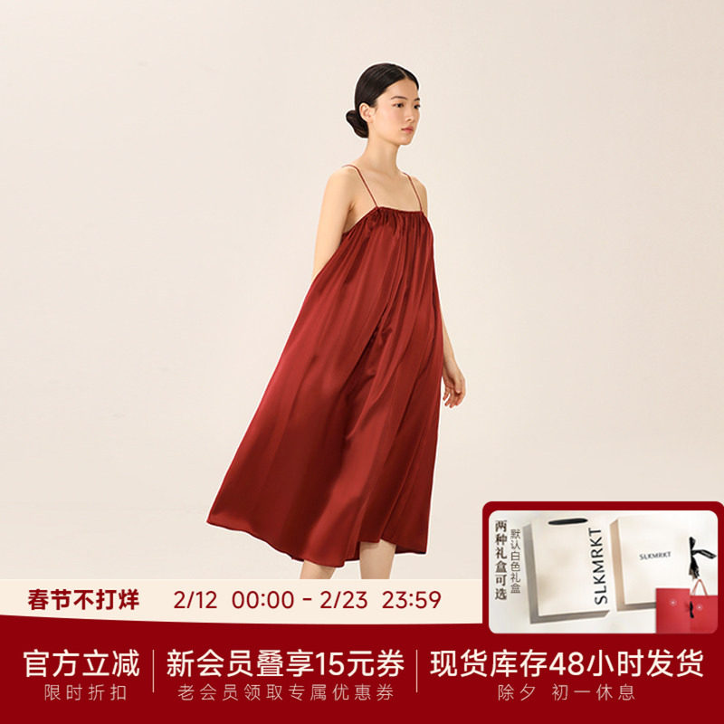 📚 SLKMRKT乃丝真丝睡裙性感吊带连衣裙睡衣红色桑蚕丝家居服女夏季