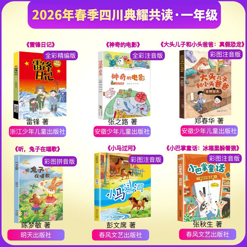 📚 2026年春季四川典耀共读一年级必读课外书 雷锋日记全彩神奇的电影听兔子在唱歌小马过河大头儿子和小头爸爸真假恐龙冰箱里躲着狼