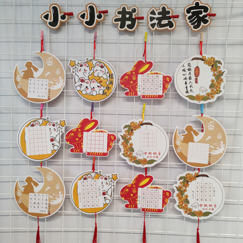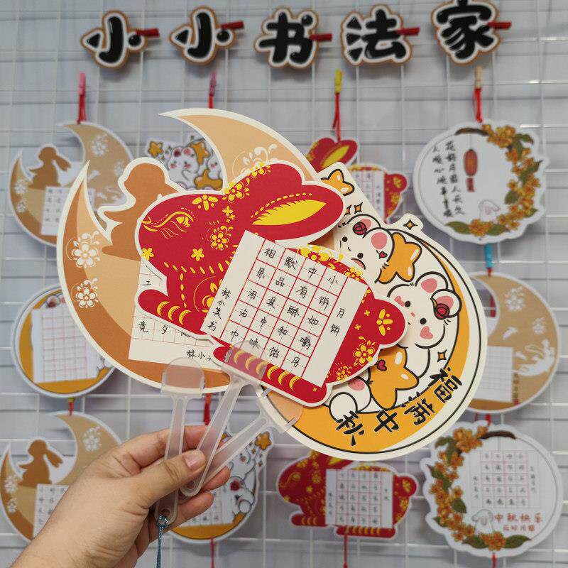 📚 中秋节创意异形硬笔书法作品纸新中式玉兔桂花小学生古诗抄写纸田字格小楷练字比赛专用展示悬挂书写祝福贺卡