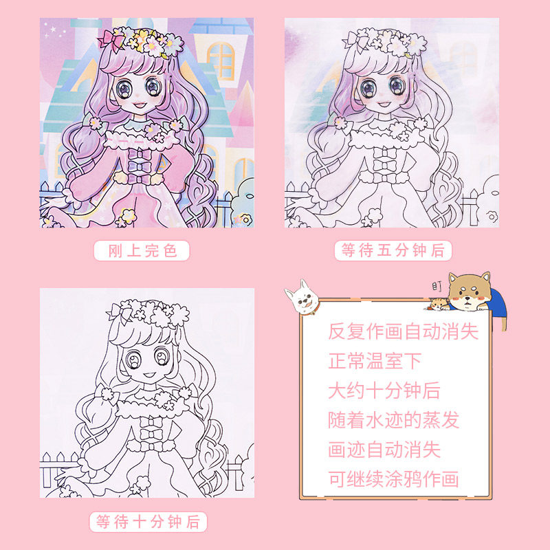 📚 儿童美丽公主神奇水画本清水绘画反复涂鸦女孩宝宝沾水画画涂色本