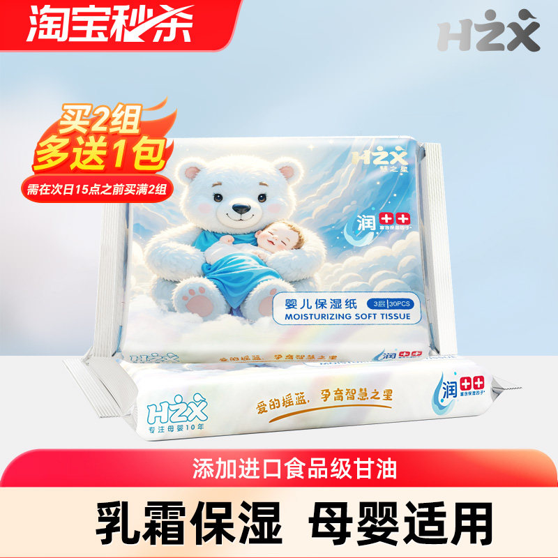 📚 【淘秒】慧之星婴儿保湿乳霜云柔纸巾2包宝宝益初甘油母婴抽纸