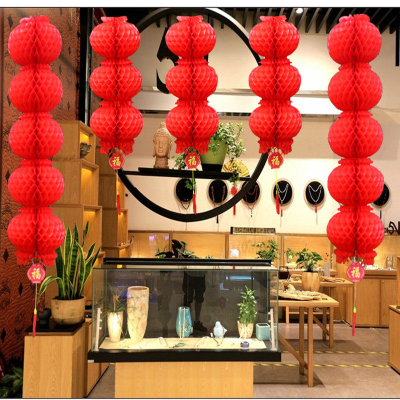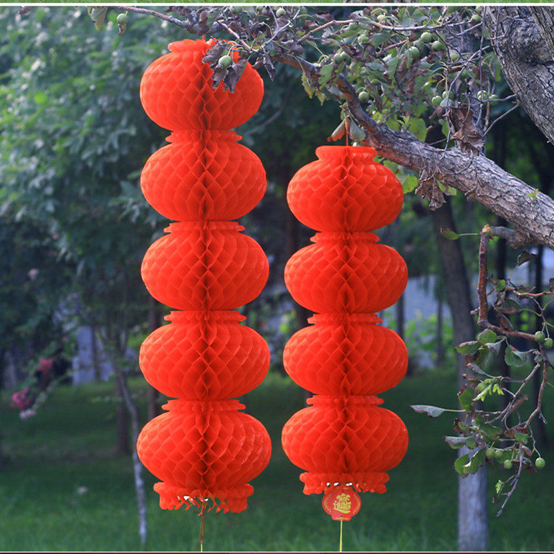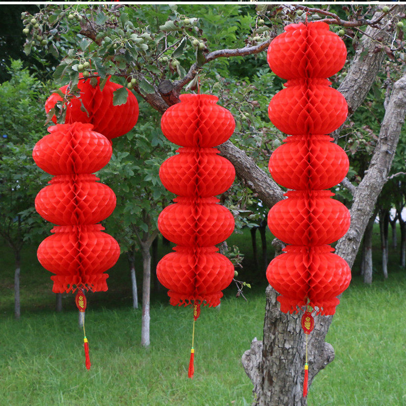 📚 大红灯笼连串室外蜂窝纸灯笼春节元旦灯笼挂饰新年商场装饰灯笼串