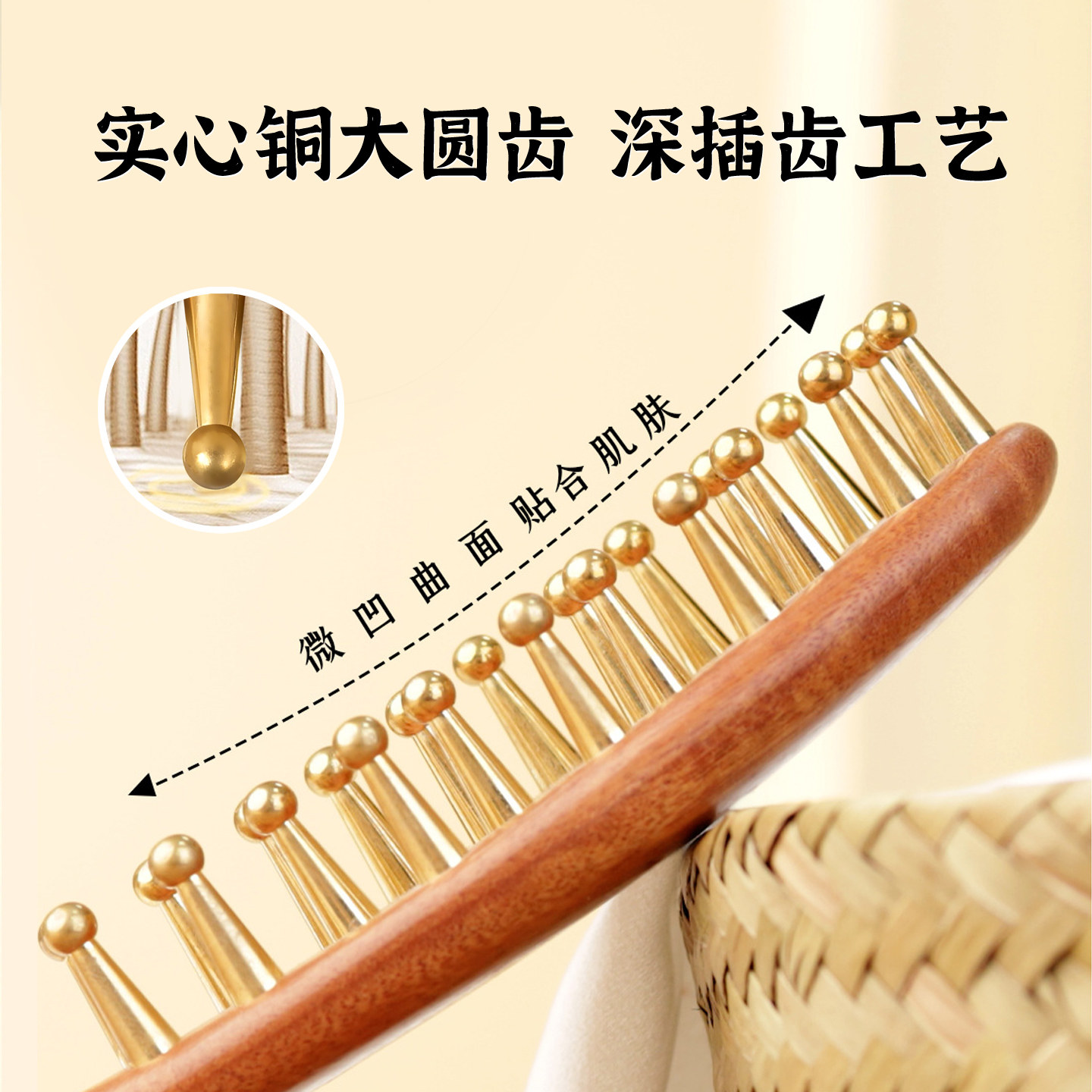 📚 黄铜经络梳按摩梳子头皮头部经络疏通加厚宽齿疗通男女士金丝檀木
