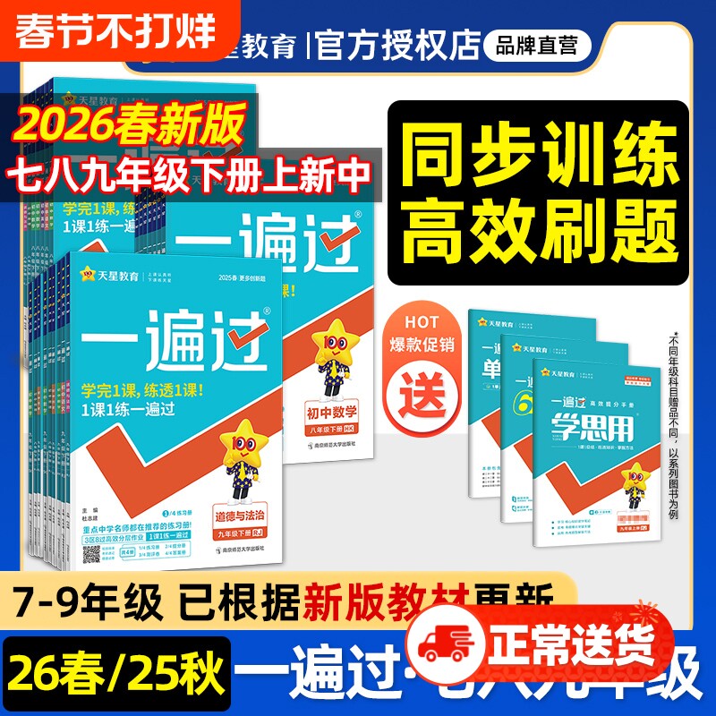 📚 2026春初中一遍过七年级八九年级上册下册语文数学英语物理化学地理生物政治历史人教版北师版初一二小四门同步练习册初中练习题